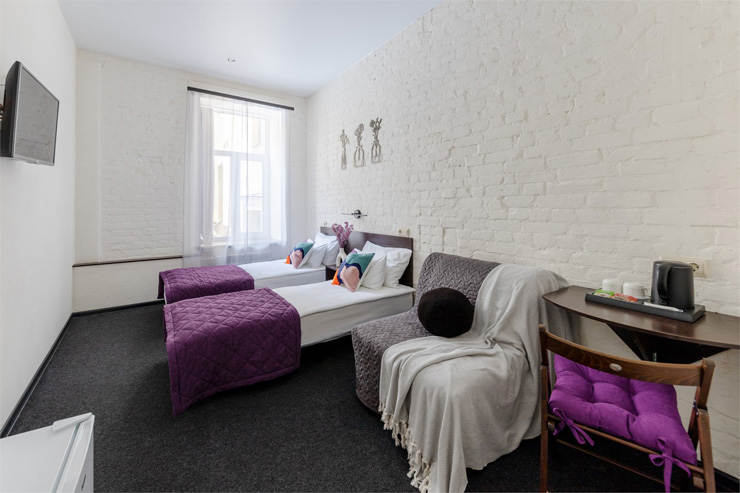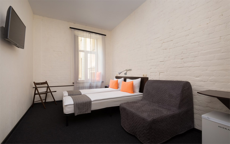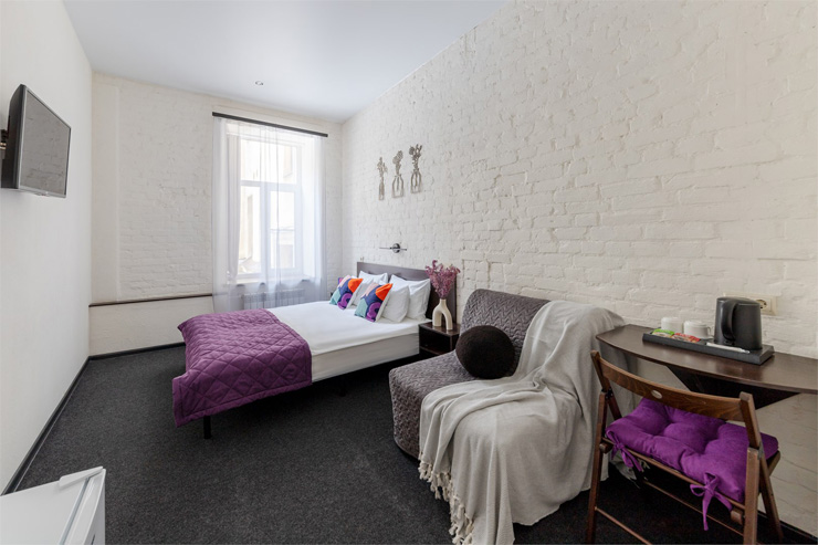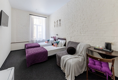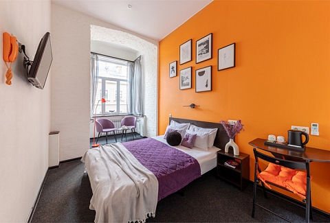 В 3,5 километрах от отеля расположен Московский вокзал. Отель расположен в Центральном районе – отличный выбор для прогулок по историческому центру города, посещения музеев и ознакомления с достопримечательностями Северной Столицы.Гостиница разместилась в четырехэтажном историческом здании, которое возвышается на углу канала Грибоедова. Жилой фонд, способный единовременно разместить более 110 человек, предлагает гостям комфортные двухместные номера. Во всех комнатах яркий современный интерьер, есть собственный санузел, кондиционер, плазменный телевизор. При отеле работает кафе, оформленное в популярном атмосферном стиле лофт. Гостям доступны услуги бытовых служб, беспроводной интернет, на ресепшене можно заказать такси или трансфер в аэропорт. Для проведения деловых мероприятий на первом этаже организован небольшой конференц-зал, также оформленный в стиле лофт.