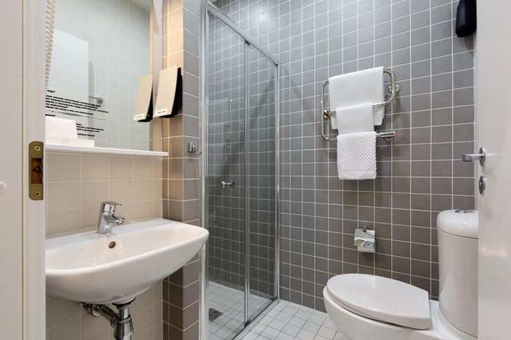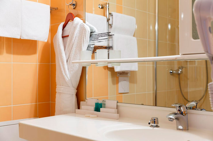 Санузел: с душем, тапочки, туалетные принадлежности, фен
