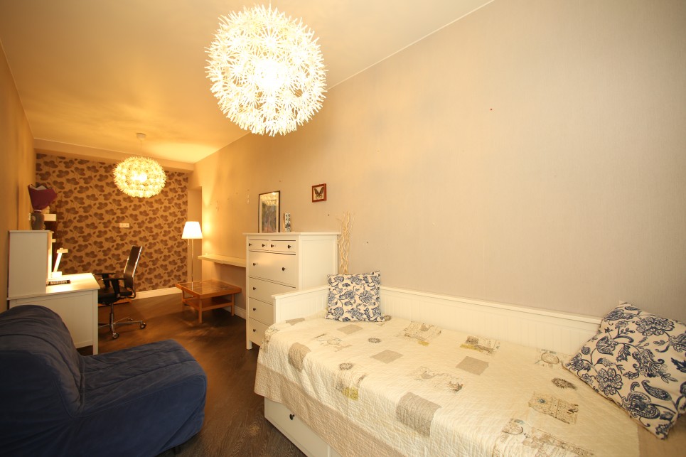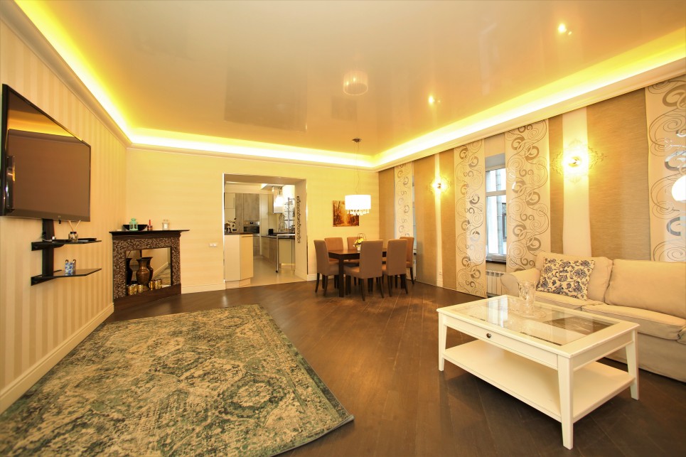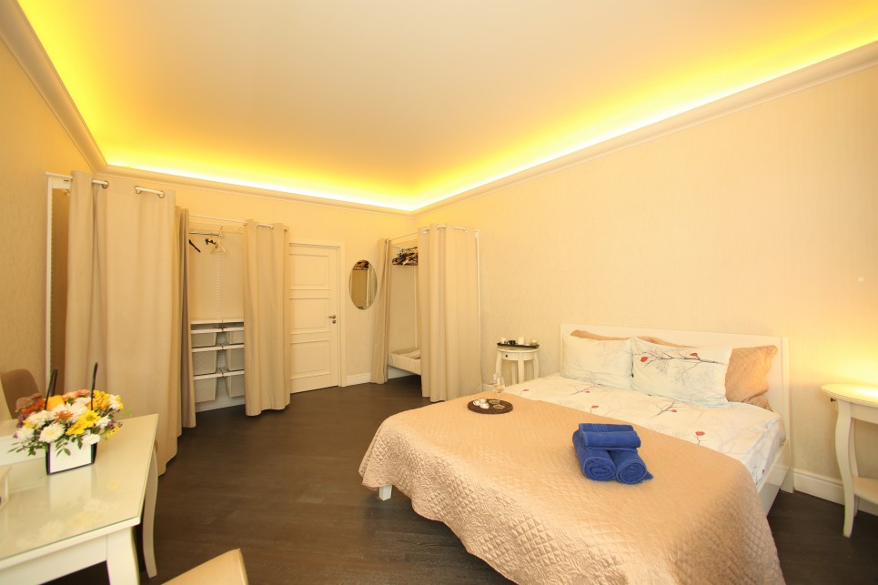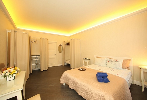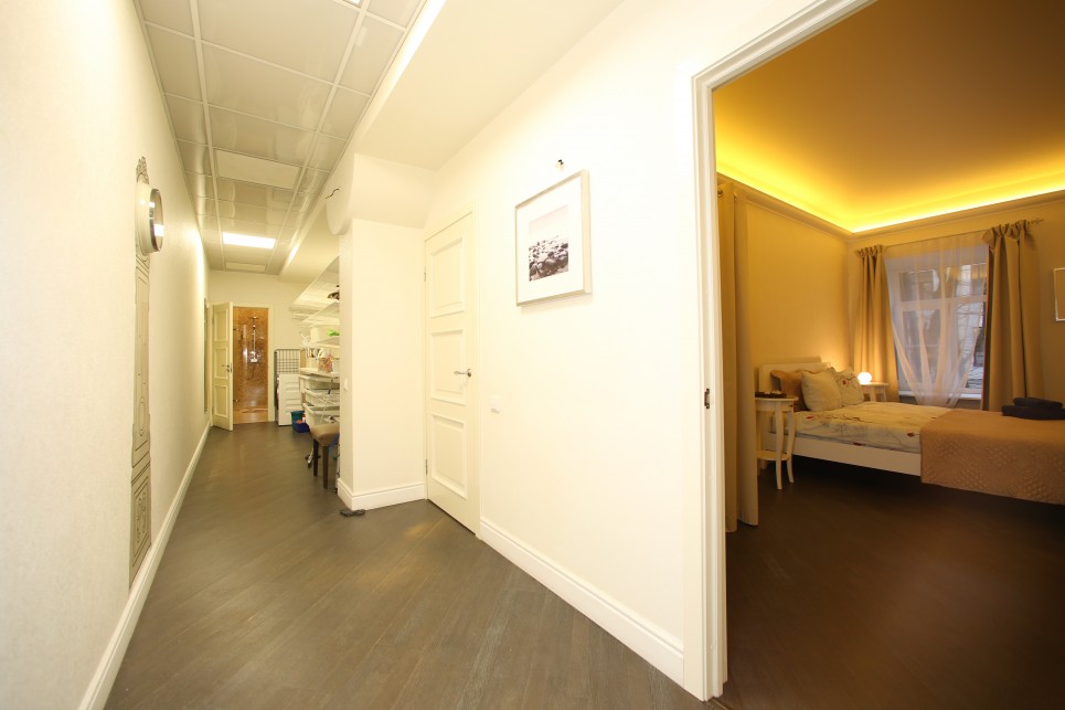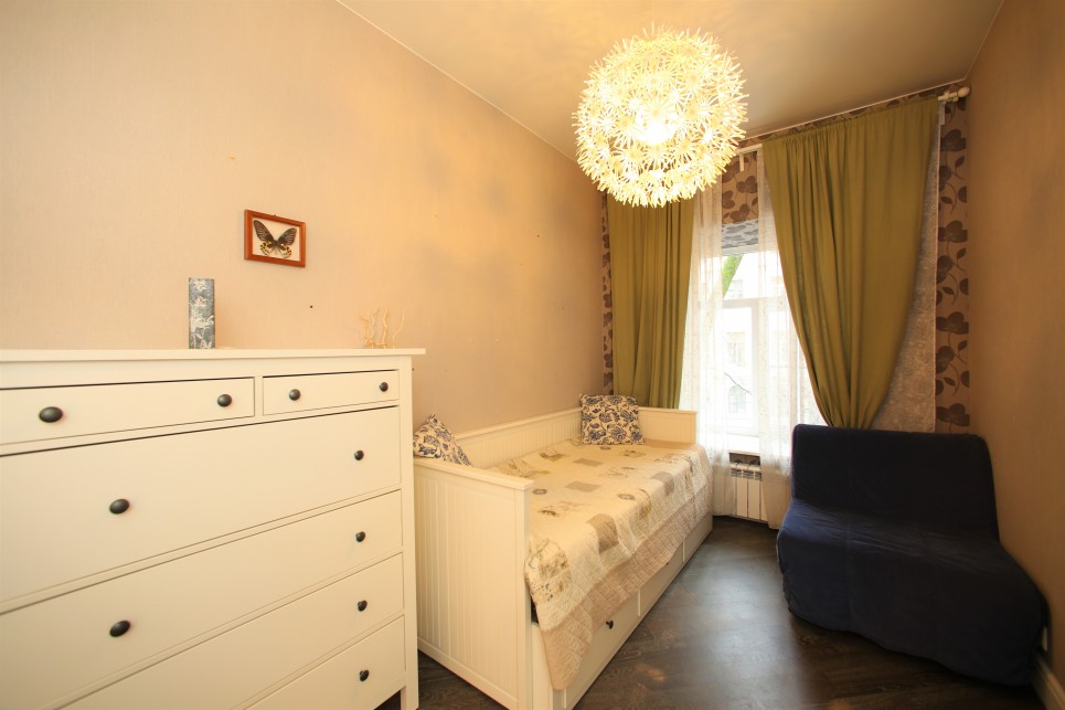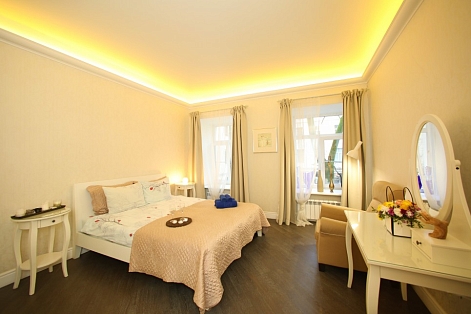 До Московского железнодорожного вокзала можно доехать за 20 минут на авто. Апартаменты расположились на третьем этаже в пятиэтажном историческом жилом доме. В распоряжении гостей трехкомнатный 5-местный номер с уютным интерьером. В апартаментах – две спальни, гостиная с обеденным столом, большим плазменным телевизором и декоративным камином, совмещенный санузел с ванной и душем, а также полностью укомплектованная кухня с встроенным холодильником, газовой плитой, духовым шкафом, посудомоечной машиной и кухонной вытяжкой. Среди прочих удобств – стиральная машина и высокоскоростной интернет.