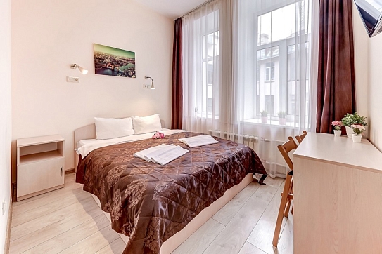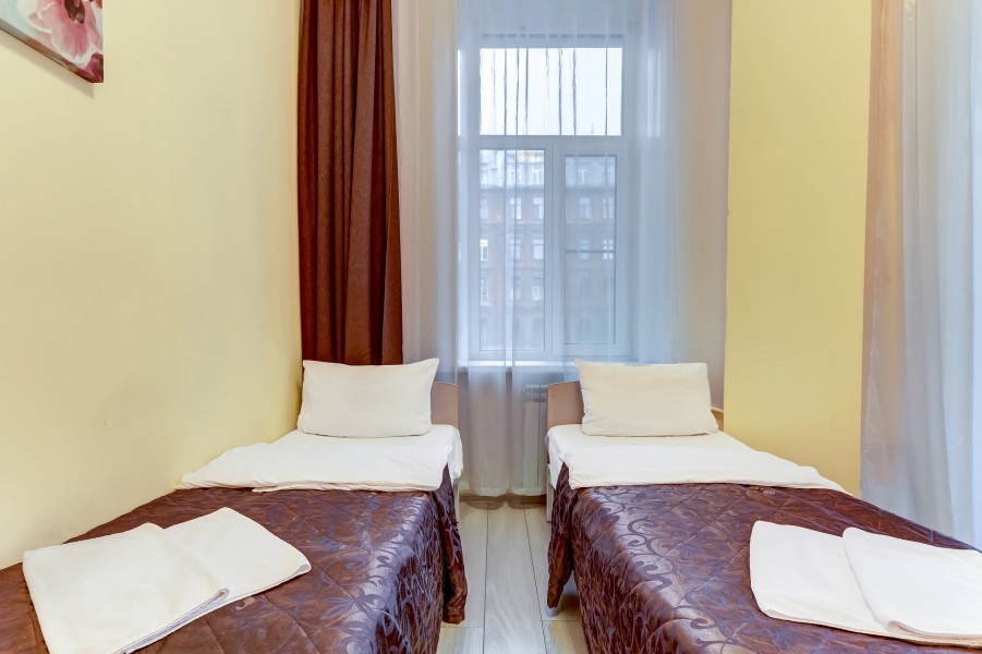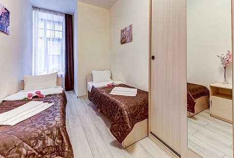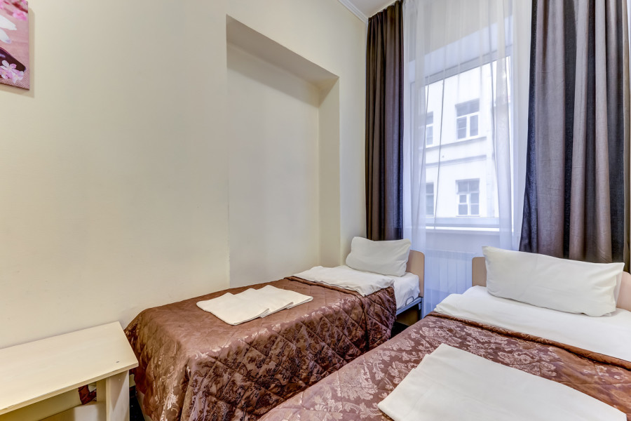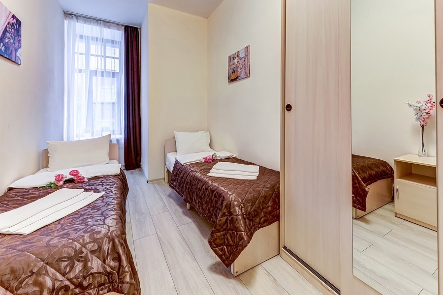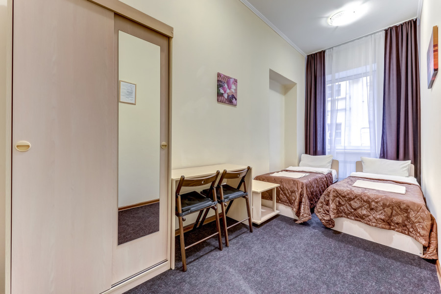 Окна выходят в тихий двор. В получасе ходьбы находятся Русский музей, Михайловский замок, набережные Фонтанки и Невы, храм Спас на Крови, Казанский Собор. Прогулка по Невскому проспекту приведет Вас на Дворцовую площадь, к Эрмитажу. Номера укомплектованы удобными кроватями с ортопедическими матрасами, LCD телевизорами, стульями, столиками, зеркалами и всем необходимым для комфортного проживания! На каждом этаже отеля есть кухонная зона с холодильником, микроволновой печью, электрочайником, кулером, посудой и приборами, а также фен, стиральная машина, гладильная доска и утюг.