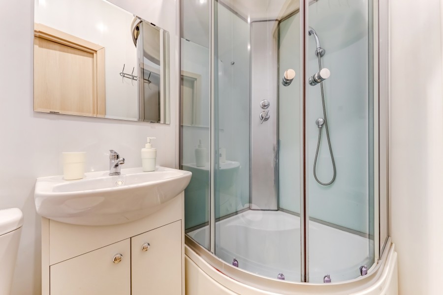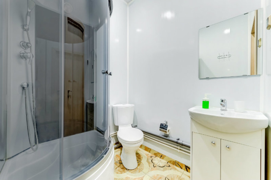 Санузел: с душевой кабиной, туалетные принадлежности, фен