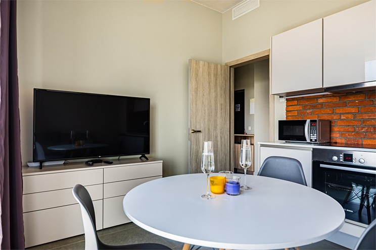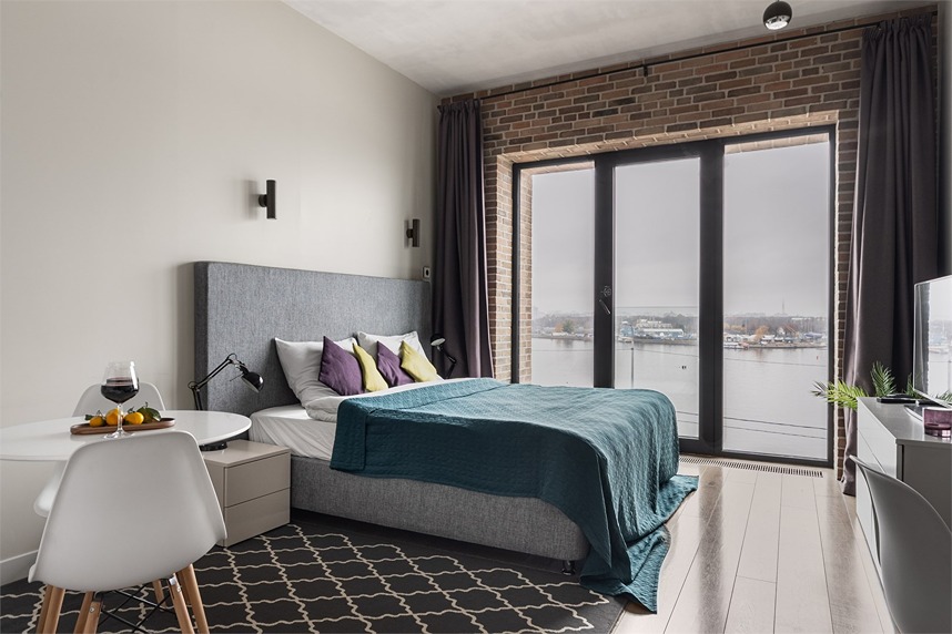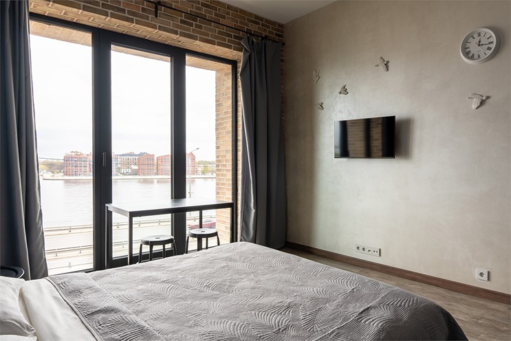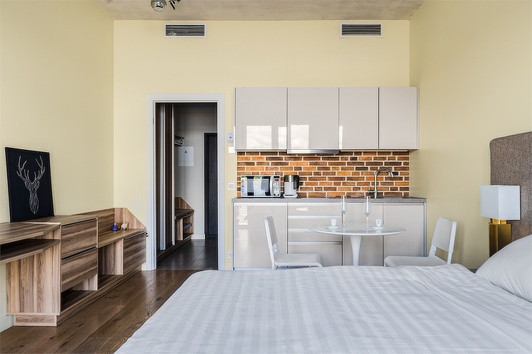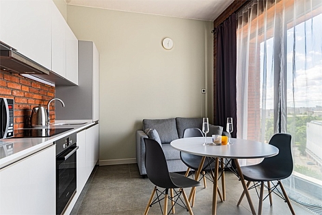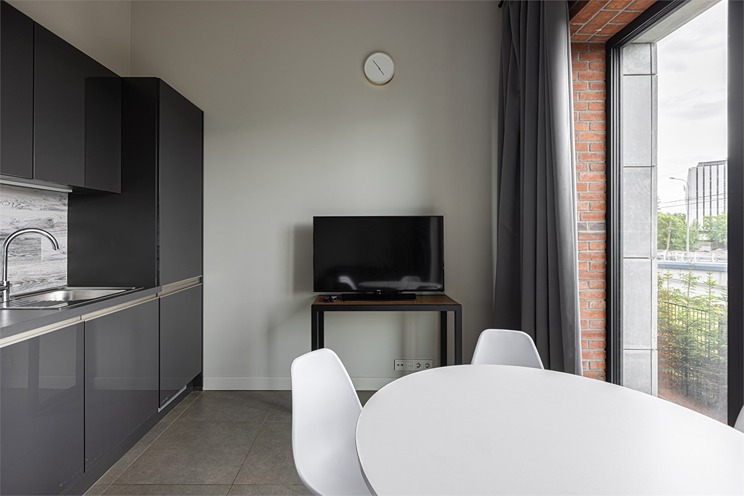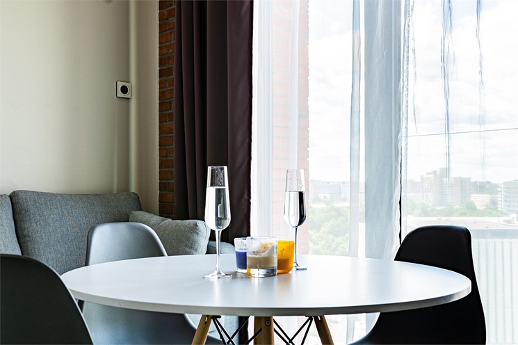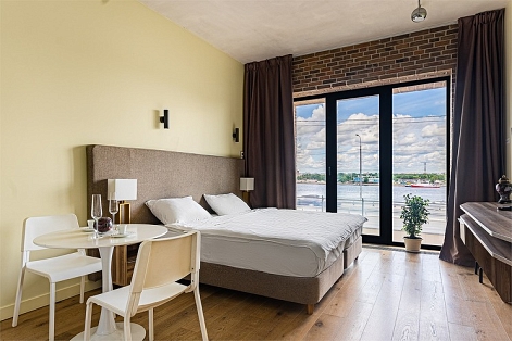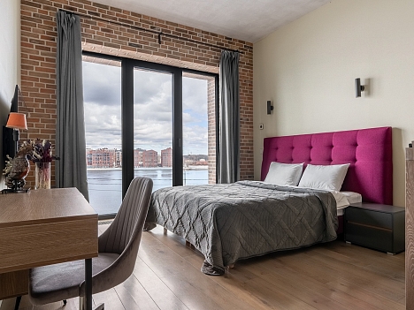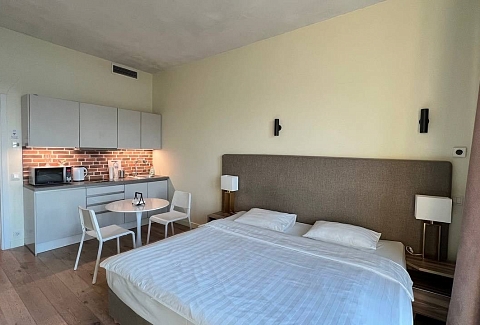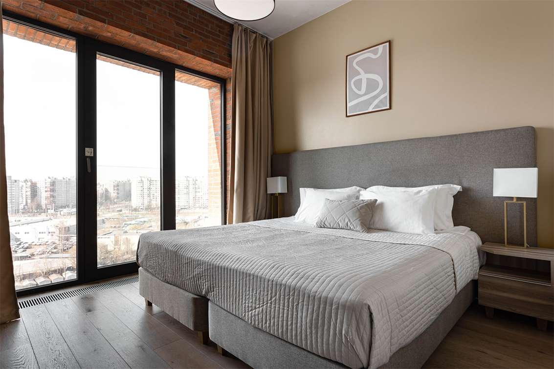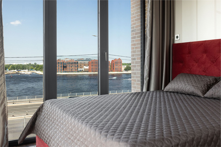 В распоряжении гостей 2-х–4-х местные Апартаменты с удобствами. В каждом номере предусмотрена кухня, оборудованная необходимой техникой, в том числе есть стиральная машина, кофемашина, электрическая плита и микроволновая печь. В собственной ванной комнате для гостей подготовлены халаты и наборы косметических принадлежностей. Также в каждом номере установлен кондиционер, имеется телевизор с плоским экраном и беспроводной интернет. В комнатах большие окна, из некоторых открываются панорамные виды на город и Неву.В здании работает ресторан, есть коворкинг-зона, для малышей организована игровая площадка на прилегающей территории, а для автовладельцев предусмотрены парковочные места.
