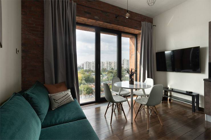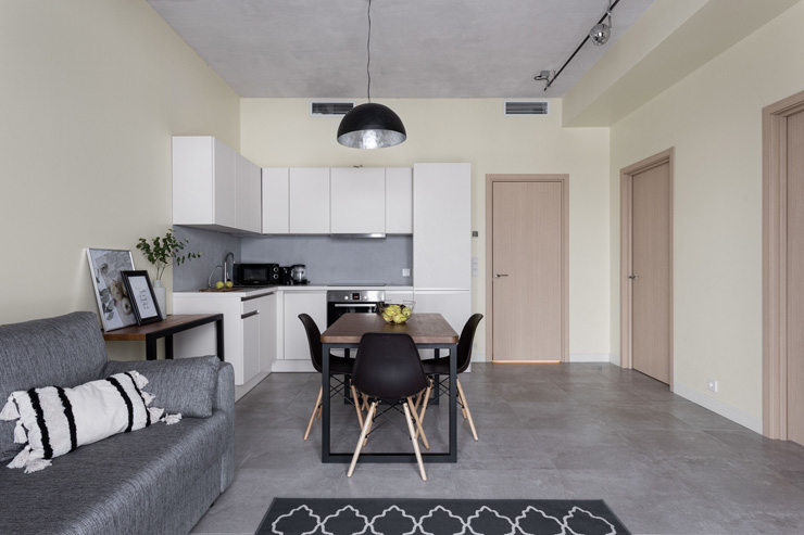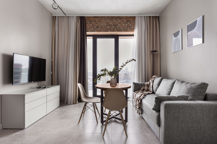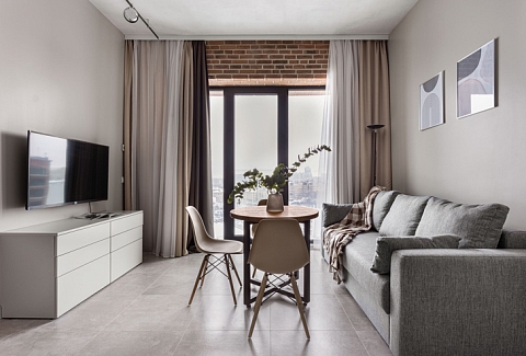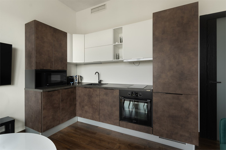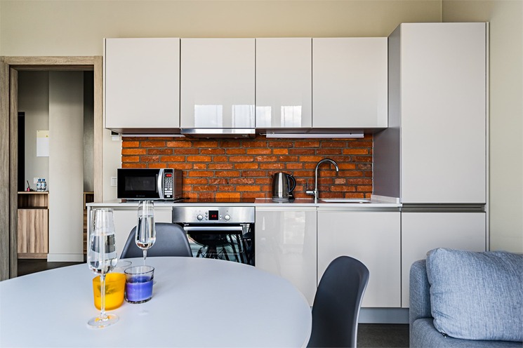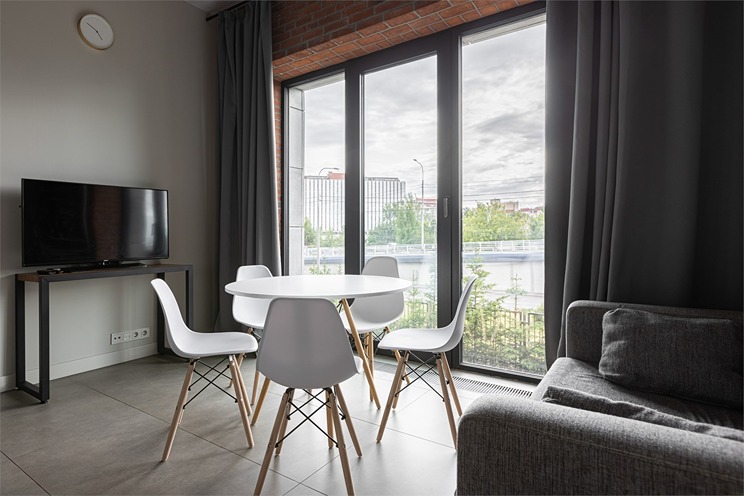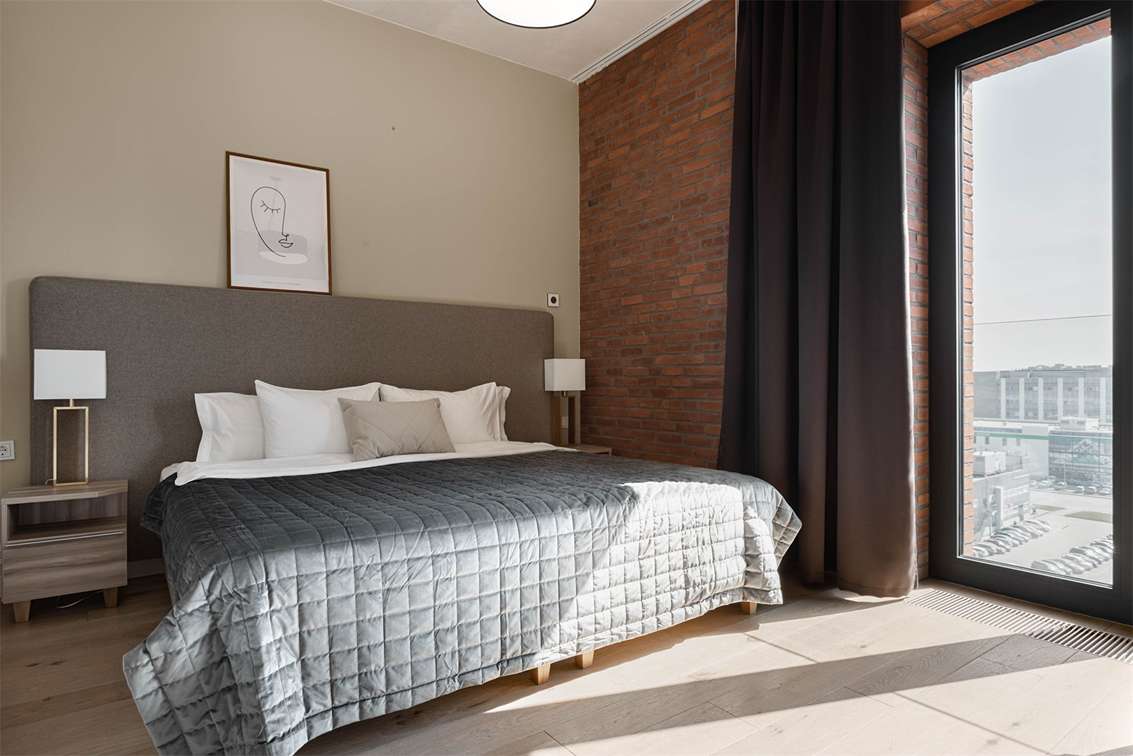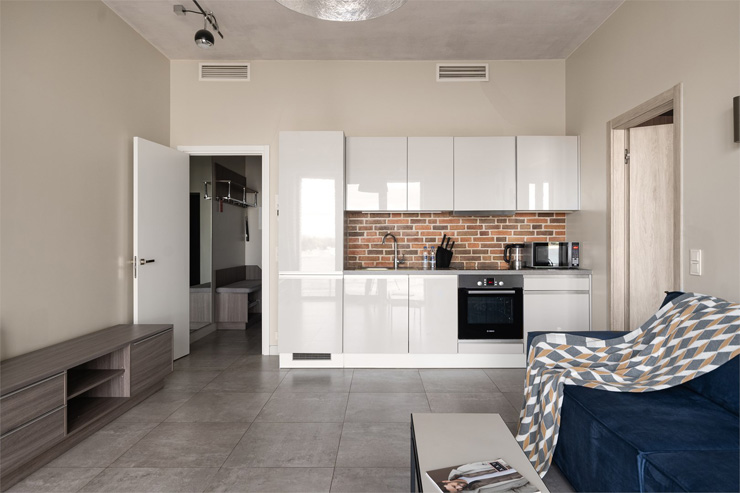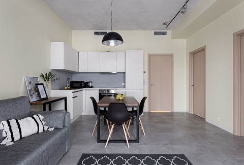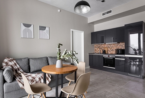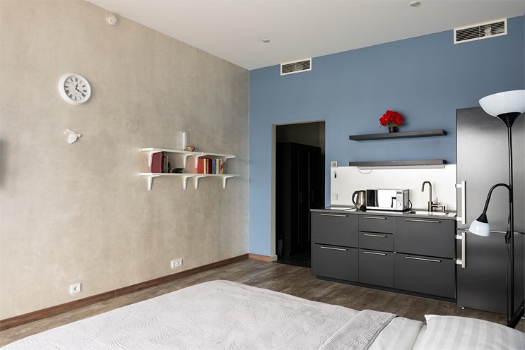 В распоряжении гостей 2-х–4-х местные Апартаменты с удобствами. В каждом номере предусмотрена кухня, оборудованная необходимой техникой, в том числе есть стиральная машина, кофемашина, электрическая плита и микроволновая печь. В собственной ванной комнате для гостей подготовлены халаты и наборы косметических принадлежностей. Также в каждом номере установлен кондиционер, имеется телевизор с плоским экраном и беспроводной интернет. В комнатах большие окна, из некоторых открываются панорамные виды на город и Неву.В здании работает ресторан, есть коворкинг-зона, для малышей организована игровая площадка на прилегающей территории, а для автовладельцев предусмотрены парковочные места.