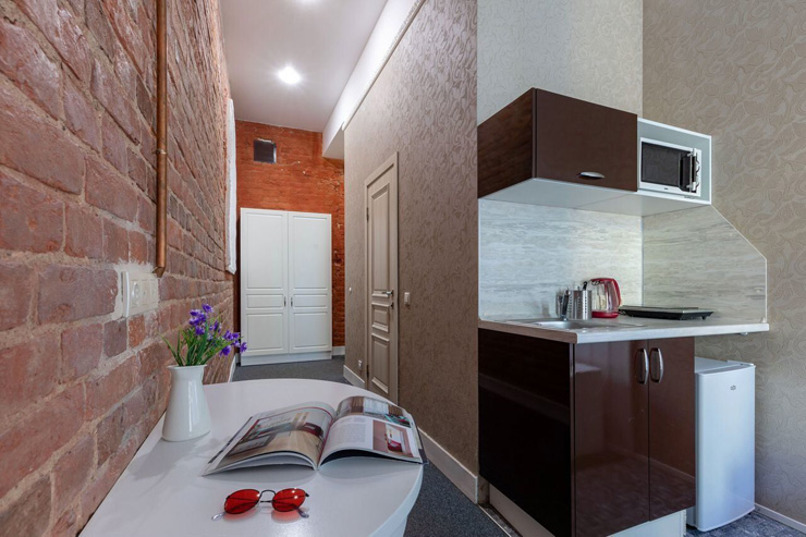 В распоряжении гостей просторные апартаменты со всеми необходимыми удобствами. В номерах – просторные мягкие кровати, ЖК-телевизор, кондиционер, мини-кухня с электроплитой, в санузле – душ и косметические принадлежности для гостей.Среди прочих услуг – общая прачечная и гладильное оборудование, это делает пребывание в апарт-отеле еще более комфортным.