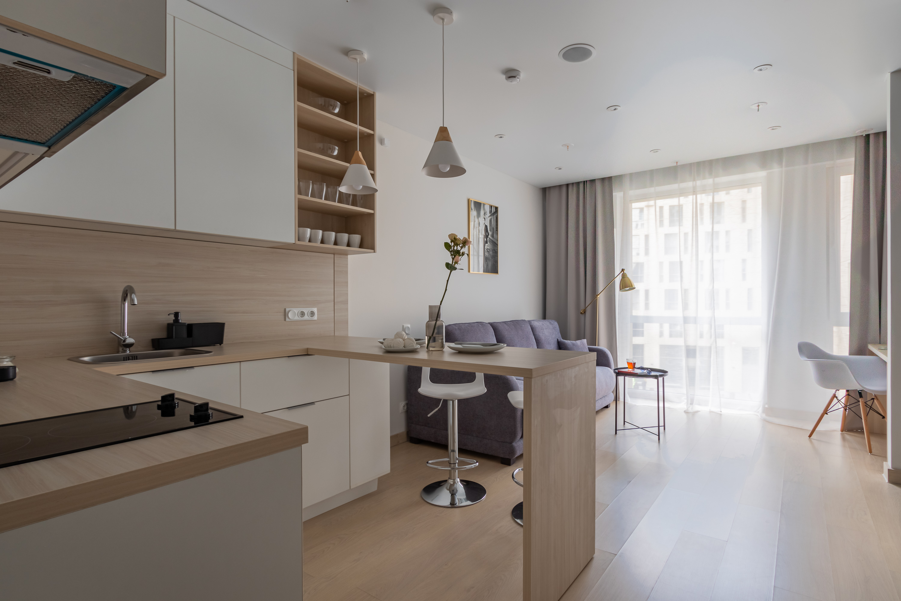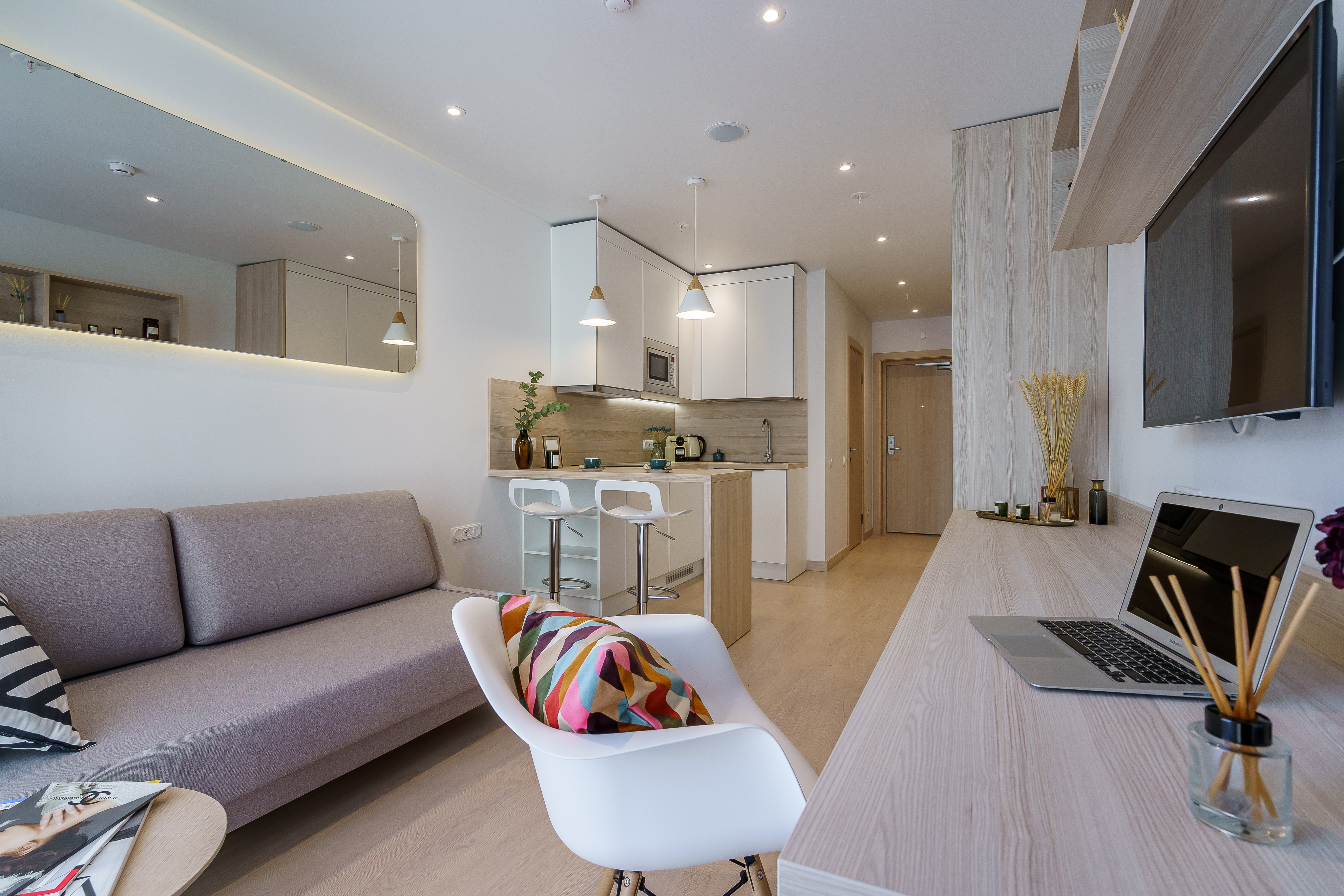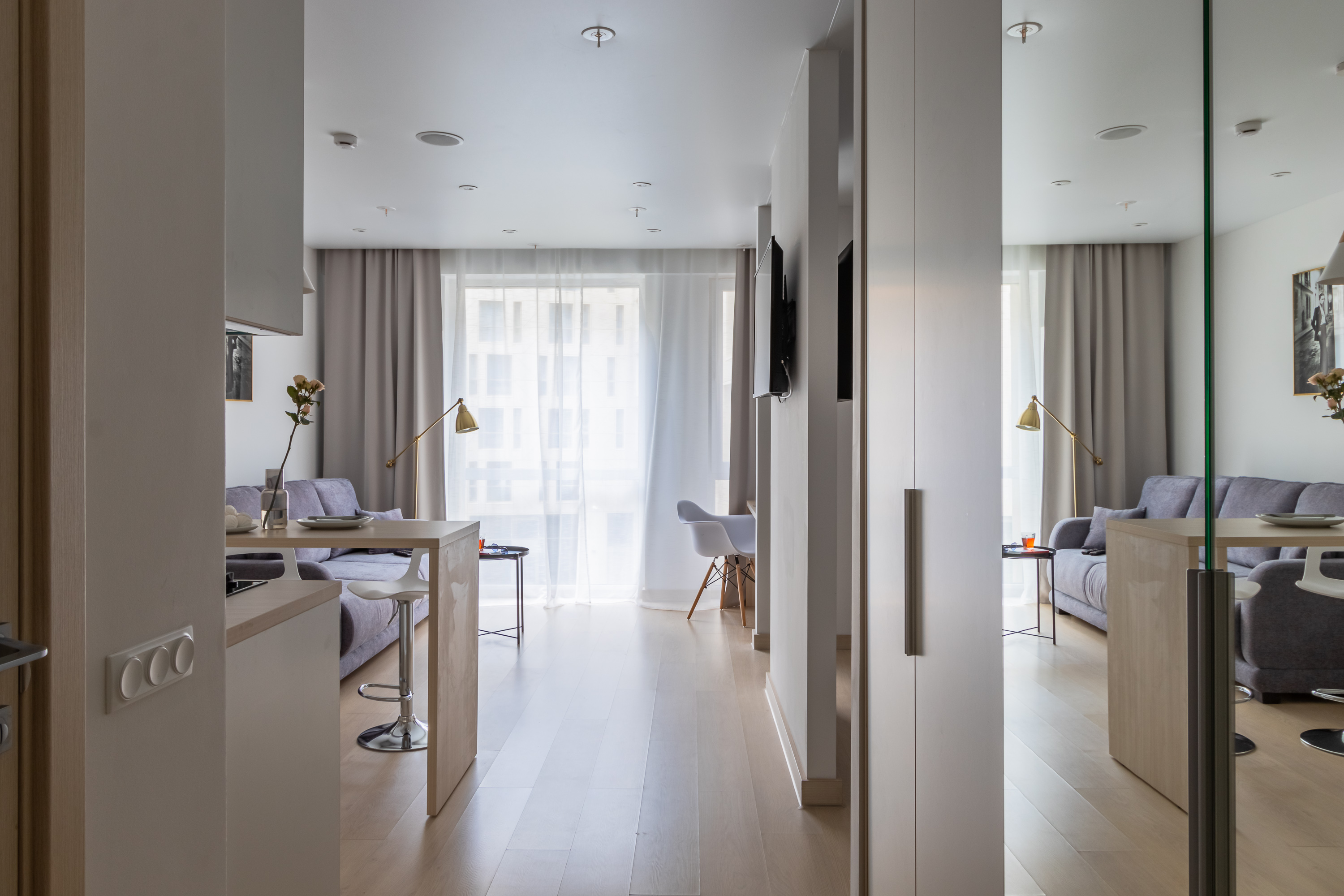 Апартаменты разместились в современном девятиэтажном здании, оснащенном лифтами. В распоряжении гостей 2-х и 4-х местные номера со стильными светлыми интерьерами. Все апартаменты оснащены собственной ванной комнатой, мини-кухней с электроплитой, также есть стиральная машина, телевизор с плоским экраном, микроволновая печь, электрочайник, кофемашина. В числе удобств – крытая парковка, беспроводной интернет, а также лобби-бар.