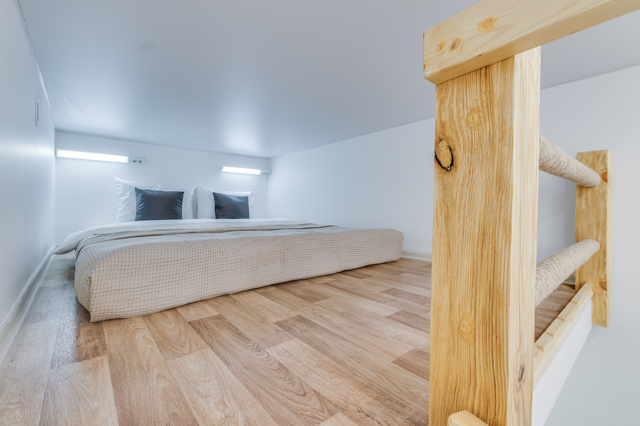 В номере: вешалка, зеркало, кресло-кровать, матрас, стеллаж, стол, стулья, мини-холодильник, набор посуды, плита электрическая, телевизор, чайный набор посуды, электрочайник
