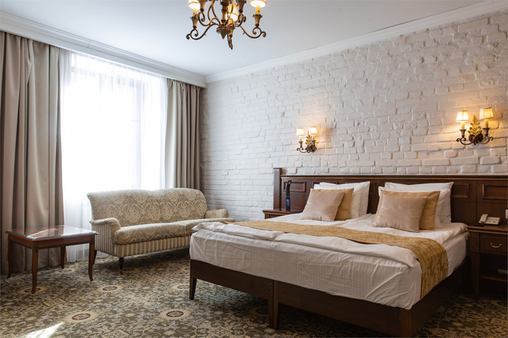 Жилой фонд включает 16 номеров, оформленных в элегантном классическом стиле. Представлены различные категории размещения, от стандартных комнат на двоих до двухкомнатных апартаментов на четверых. Везде гости могут подключиться к Wi-Fi. По запросу предоставляются гладильные принадлежности, услуги прачечной.В отеле оборудована столовая, где для проживающих накрывают завтрак. Есть возможность заказать фрукты и цветы. У здания оборудована охраняемая парковка.