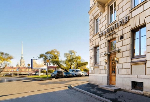 Самолетом до аэропорта Пулково (г. Санкт-Петербург) , далее на рейсовом автобусе №39 до остановки «ст. м. Московская», далее на метро до станции «Горьковская», далее пройти пешком 1,3 км или на любом трамвае до остановки «Проспект Добролюбова», затем 60 м до отеля.