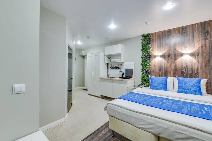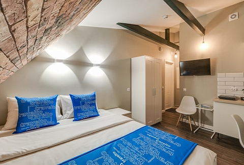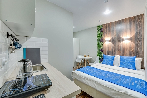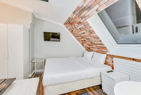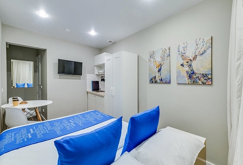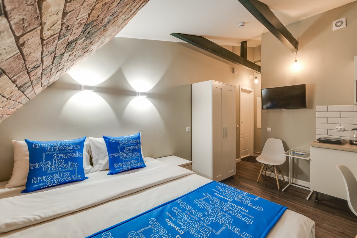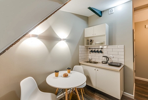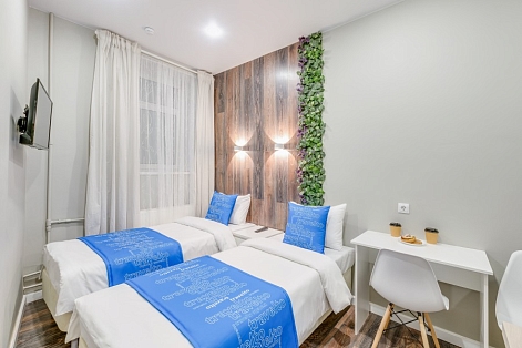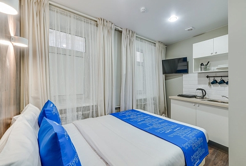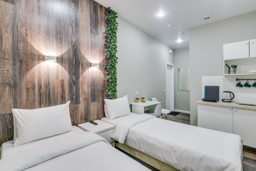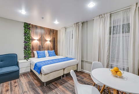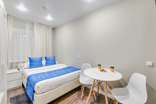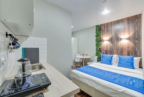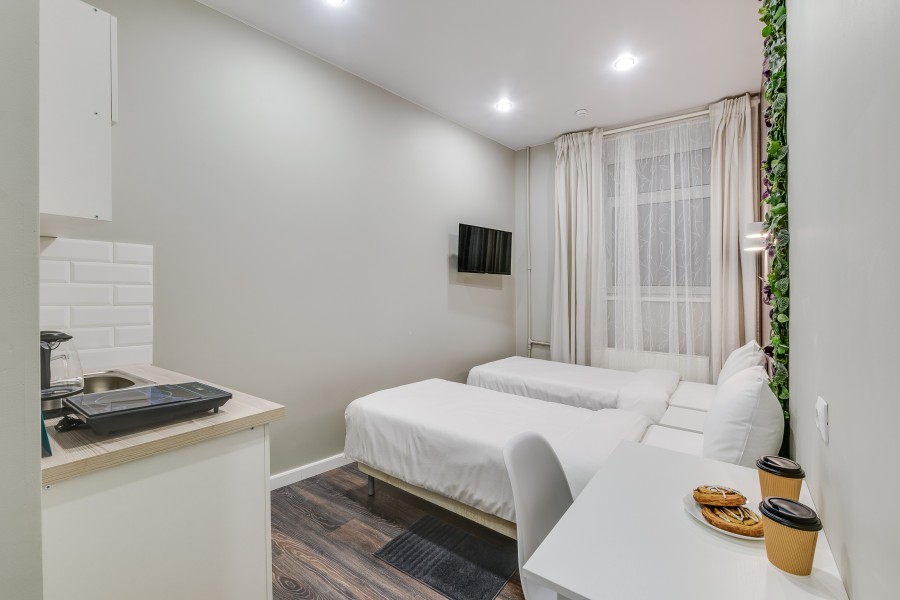Недалеко находятся Витебский и Московский вокзалы.Отель разместился в четырехэтажном историческом здании, расположенном возле площади Пяти Углов. В распоряжении гостей двухместные стильные Апартаменты со светлым современным интерьером. В каждом номере имеется мини-кухня с электроплиткой и другой бытовой техникой, санузел с душем, плазменный телевизор и высокоскоростной интернет.
