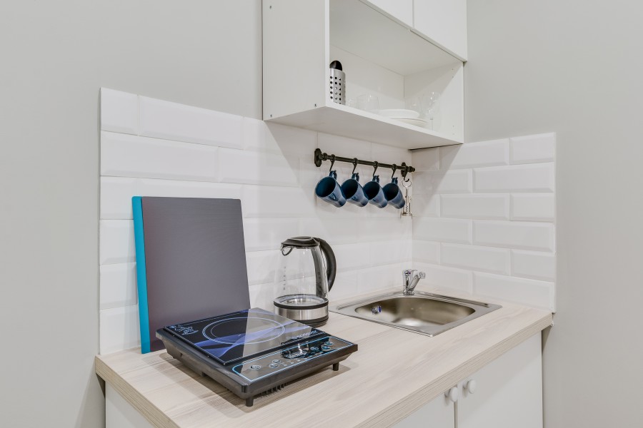 В номере: кровати односпальные, стол, стулья, шкаф, шкаф для посуды, мини-холодильник, набор посуды, плита электрическая, телевизор ЖК, электрочайник