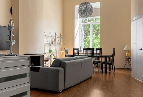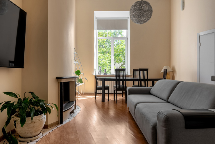 Самолетом до аэропорта Пулково (г. Санкт-Петербург), далее на рейсовом автобусе №39 до остановки «Станция метро Московская», далее на метро до станции «Технологический институт-2», далее на рейсовом автобусе №262 до остановки «Площадь Труда – Центральный военно-морской музей», далее пройти 115 м до апартаментов.