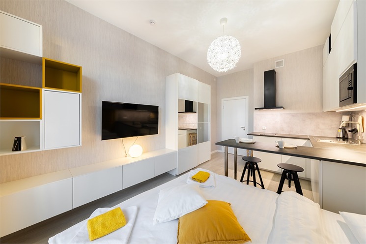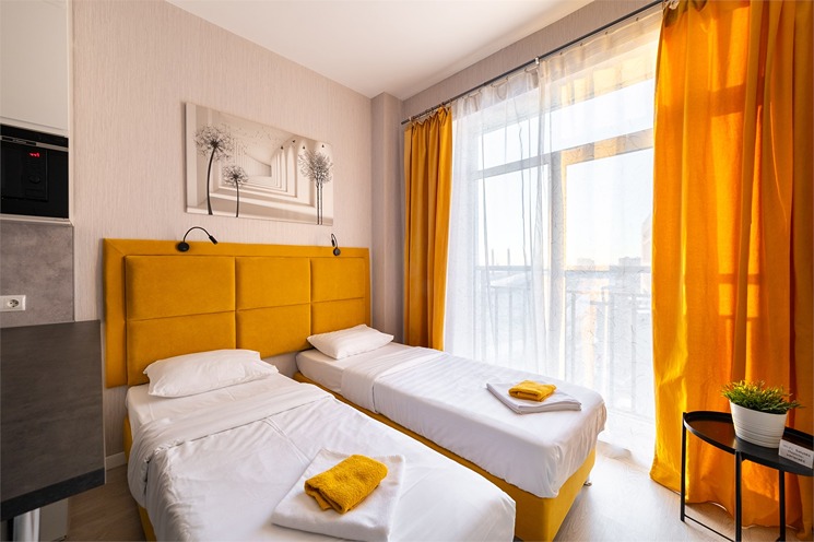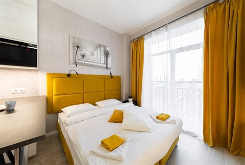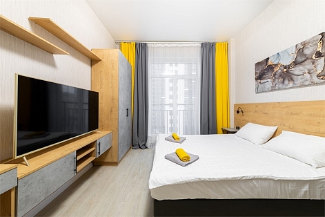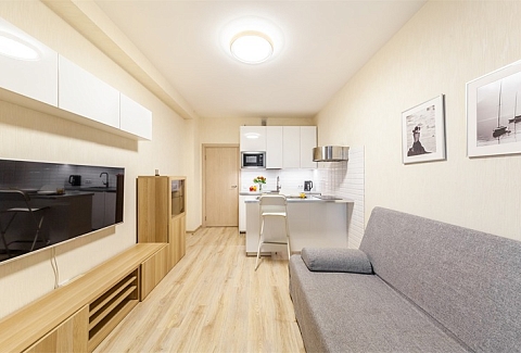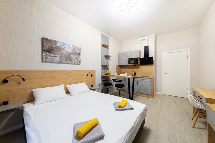 До Московского вокзала – 30 минут езды, а до аэропорта «Пулково» – 10 минут.Многоэтажный дом, в котором расположились апартаменты, возвышается на Пулковском шоссе. В распоряжении гостей 2-х 3-х и 4-местные номера с современным интерьером. Все номера оснащены кухонной зоной с электроплитой, мини-холодильником, микроволновой печью и электрическим чайником, есть стиральная машина, телевизор и доступен высокоскоростной интернет, который позволяет всегда оставаться на связи. В санузле – душ или ванна, фен и туалетные принадлежности для гостей. Некоторые номера оснащены балконом или террасой.На первом этаже расположены различные кафе, пекарни, рестораны и магазины. Среди услуг – камера хранения и две парковки – подземный паркинг и общественная открытая парковка рядом.