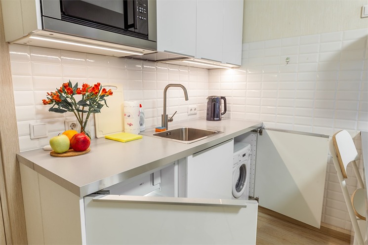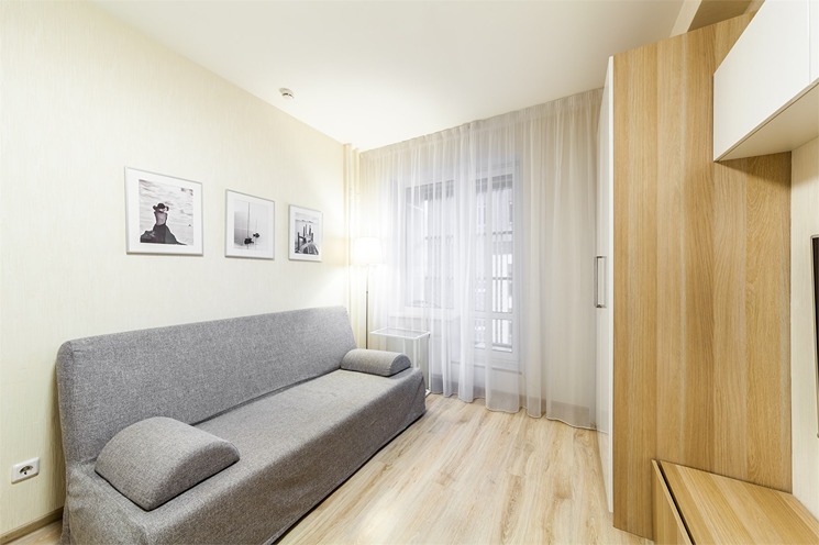В номере: вешалка, диван раскладной, зеркало, стол, стулья, шкаф, гладильная доска, микроволновая печь, мини-холодильник, набор посуды, плита электрическая, стиральная машина, телевизор, утюг, электрочайник