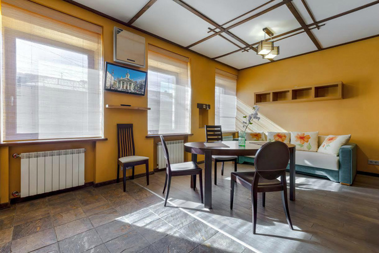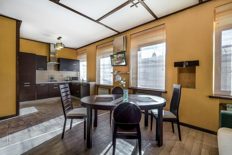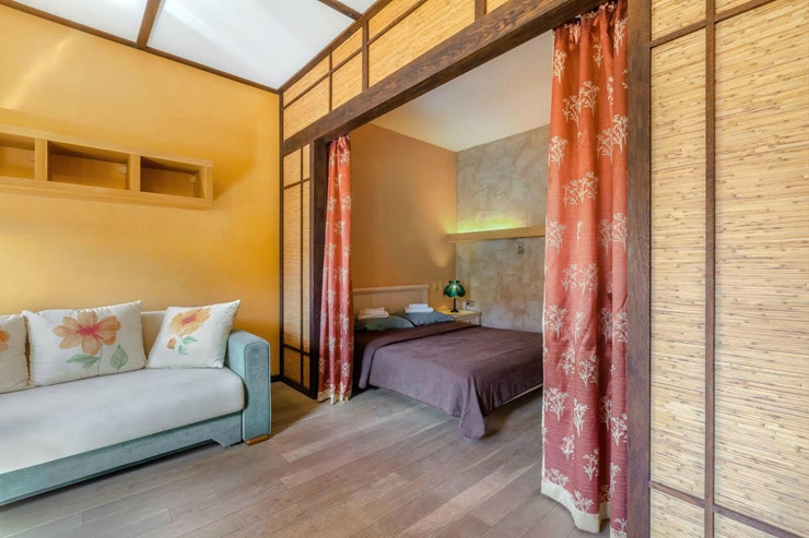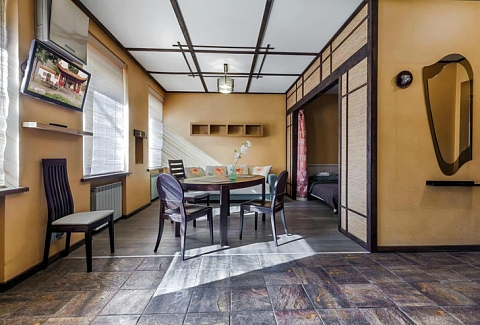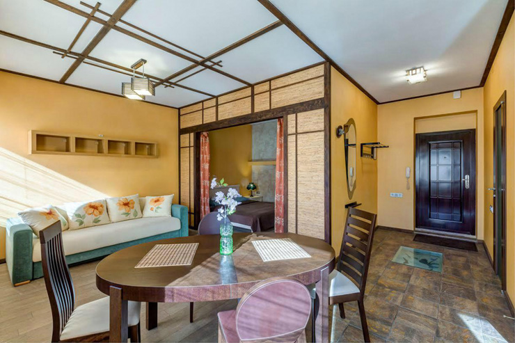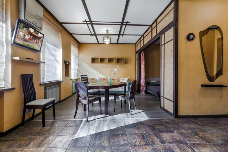 Небольшая 1-комнатная студия с интерьером в японском стиле. Имеется все необходимое для комфортного размещения двух пар или семьи из 4 человек. Проведен интернет Wi-Fi.
