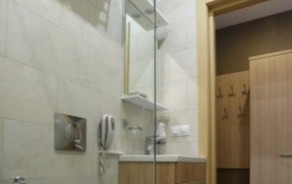 Санузел: с ванной или душевой кабиной, тапочки, туалетные принадлежности, фен