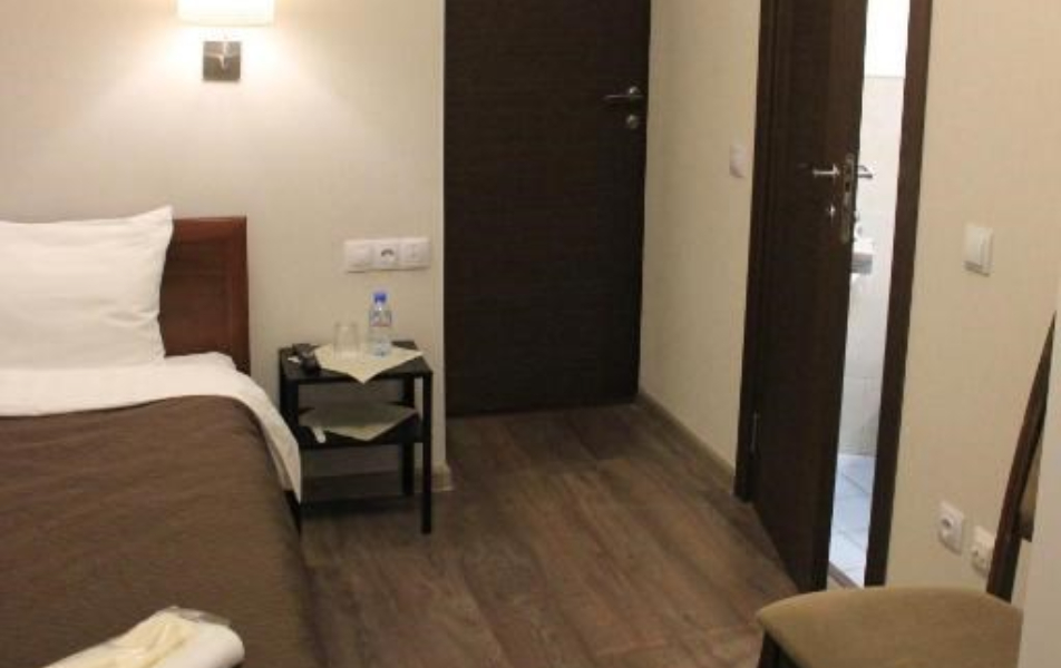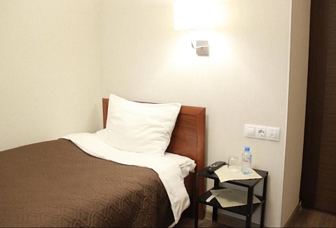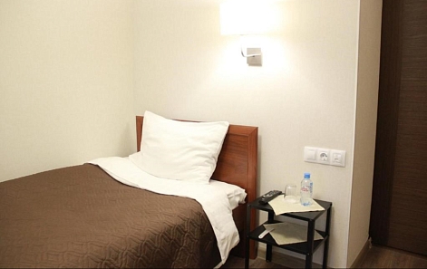 В номере: вешалка, зеркало, кровать односпальная, прикроватная тумбочка, стол, стул, шкаф, кондиционер, мини-холодильник, сейф, телевизор