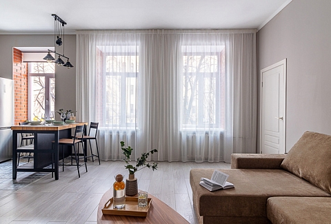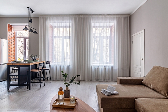 Уникальное жилье в сердце Петроградской стороны. Здесь гармонично переплетаются элегантность и удобство. Обширная гостиная с панорамными окнами дарит ощущение легкости и простора.