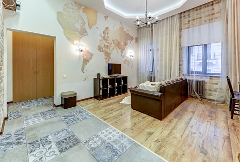 С балкона открывается великолепная панорама на городские пейзажи. Оригинальным акцентом интерьера является карта мира, украшающая одну из стен, что создает неповторимую атмосферу приключений и странствий.Для комфорта гостей:Просторная двуспальная кровать (160х200 см) и раскладывающийся диванКомплект постельного белья и необходимые принадлежности для ванной комнатыРазмещение с детьми приветствуется, возможно проживание с домашними животнымиМикроволновая печь, посудомоечная машина, бойлер для нагрева водыКабельное телевидение, беспроводной интернетВместительная гардеробная комната, доступна платная парковка.