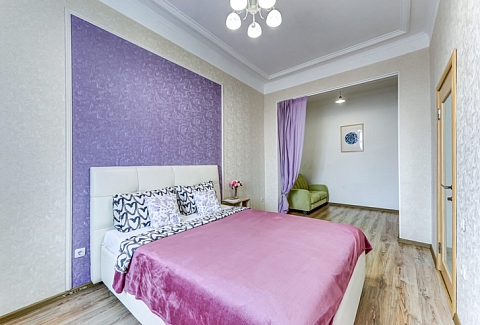В номере: вешалка, гардеробная, диван, диван раскладной, зеркало, кровать двуспальная, прикроватные тумбочки, стол, стулья, шкаф, гладильная доска, духовой шкаф, микроволновая печь, набор посуды, плита газовая, посудомоечная машина, стиральная машина, телевизор, утюг, холодильник, электрочайник