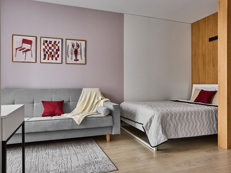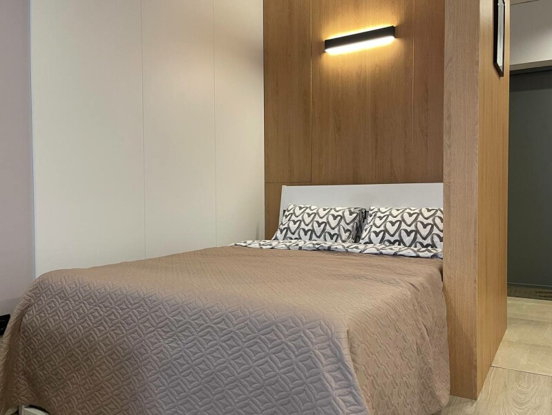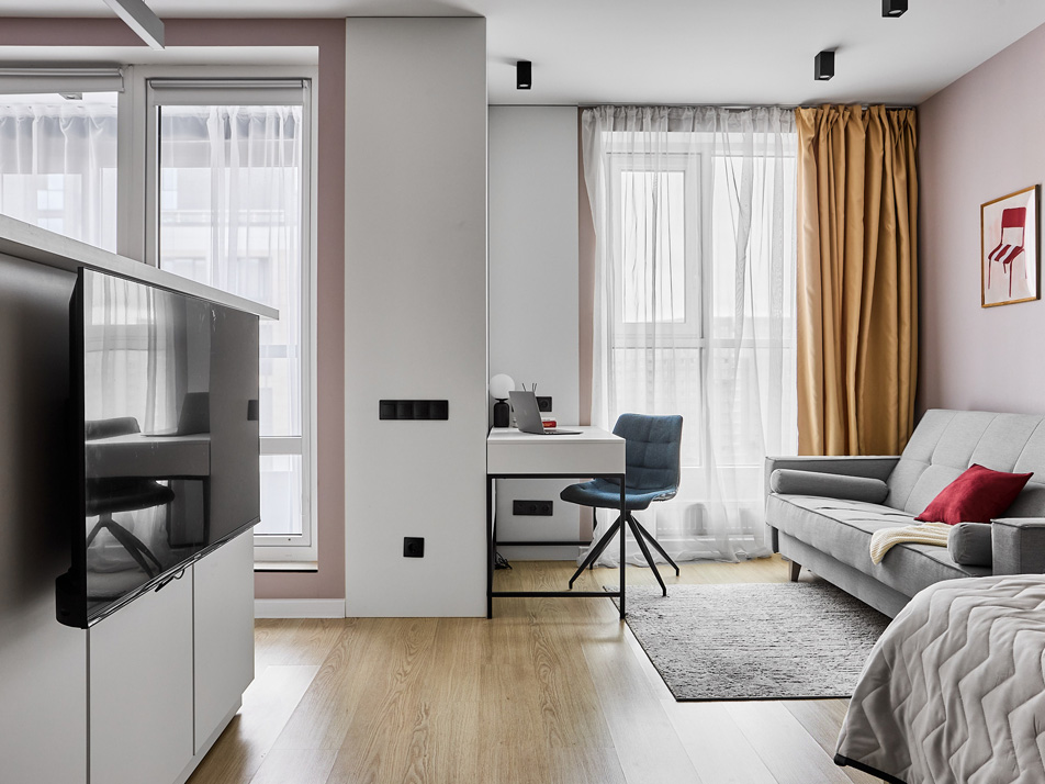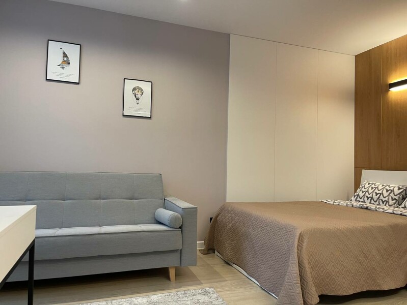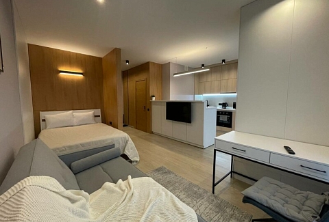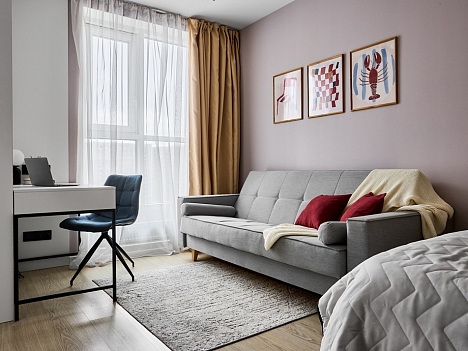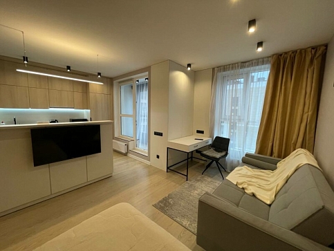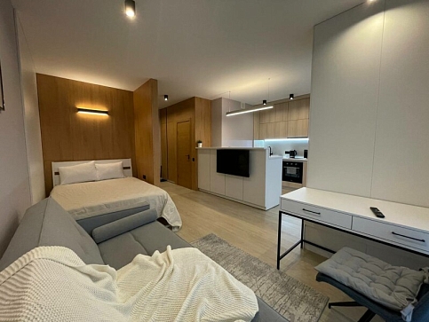 Рады приветствовать в современных апартаментах, где созданы все условия для приятного пребывания и релаксации в Северной столице! Интерьер студии оформлен в пастельных тонах с применением элементов из природного дерева и лаконичной мебели, что формирует ощущение тепла и умиротворения. Из панорамной лоджии этой студии открывается вид на тихий внутренний дворик, где можно насладиться уединением и безмятежностью.
