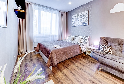 Поездом до ж/д вокзала Московский (г. Санкт-Петербург), далее на метро до станции «Беговая», далее 1,4 км до апартаментов.