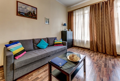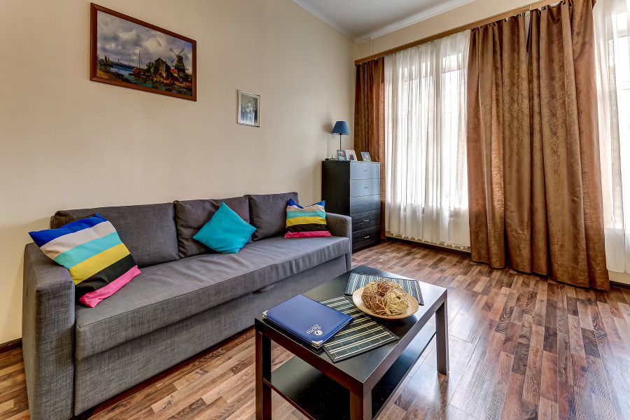 Эти комфортабельные апартаменты – прекрасный выбор для релаксации после активного дня. Благодаря отличному местоположению, гости смогут быстро добраться до главных городских достопримечательностей. Двухкомнатные апартаменты впечатляют своей просторной гостиной с двумя окнами.