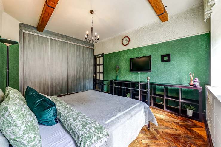 В номере: вешалка, зеркало, комод, кровать двуспальная, кровать односпальная, прикроватные тумбочки, стол, тахта, шкаф, гладильная доска, духовой шкаф, микроволновая печь, набор посуды, плита газовая, стиральная машина, телевизор, утюг, холодильник, электрочайник