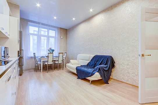 Самолетом до аэропорта Пулково (г. Санкт-Петербург), далее на рейсовом автобусе №39 до остановки «ст. м. Московская», далее на метро до станции «Чкаловская», далее пройти 1,4 км до апартаментов.