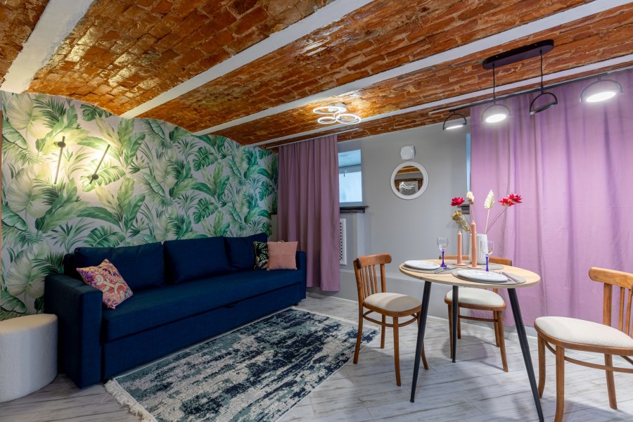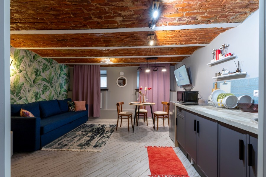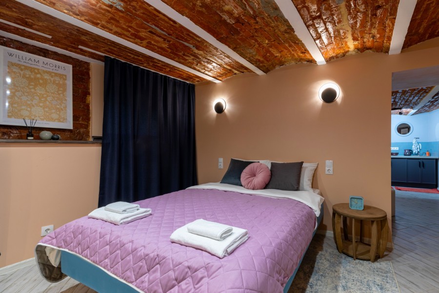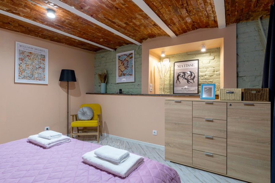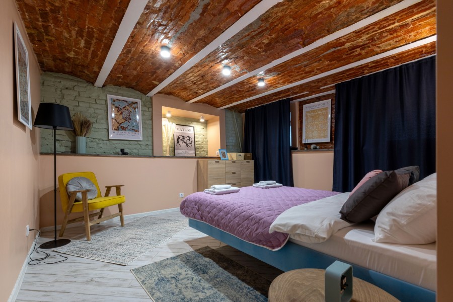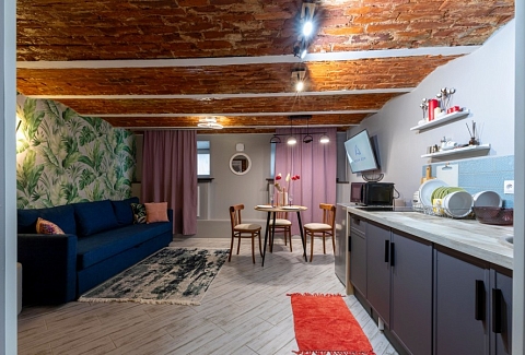 В здании работают кафе быстрого питания, бар крафтового пива, ресторан скандинавской кухни. Припарковать автомобиль можно вдоль проезжей части.В апартаментах могут с комфортом разместиться 4 гостя: отдельная спальня оборудована двуспальной кроватью, в кухне-гостиной установлен раскладной диван. В кухонной зоне есть все необходимое для приготовления еды, посудомоечная и стиральная машины, обеденная группа. Санузел располагает душевой. Для проживающих доступно подключение к Wi-Fi. Возможно заселение с питомцем.