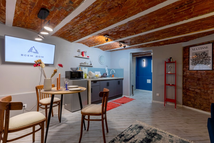 Апартаменты «Всем дом» находятся в историческом квартале культурной столицы. В радиусе нескольких кварталов расположены Витебский и Московский вокзалы, музеи Распутина, Достоевского и Римского-Корсакова, Ямской рынок. Пешая прогулка к Дворцовой площади займет около получаса.Стильные дизайнерские апартаменты размещены на полуподвальном этаже бывшего доходного дома Любавина.