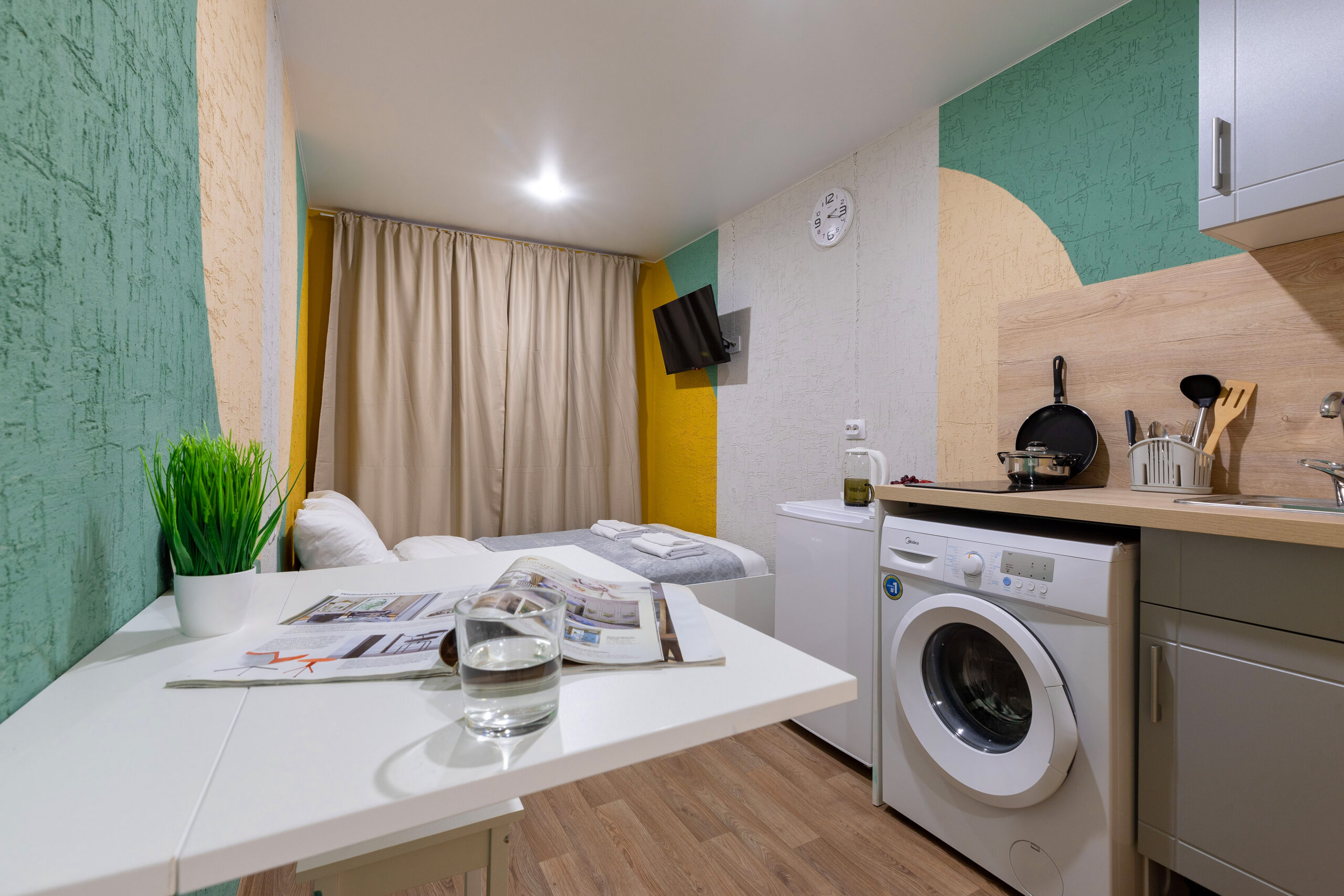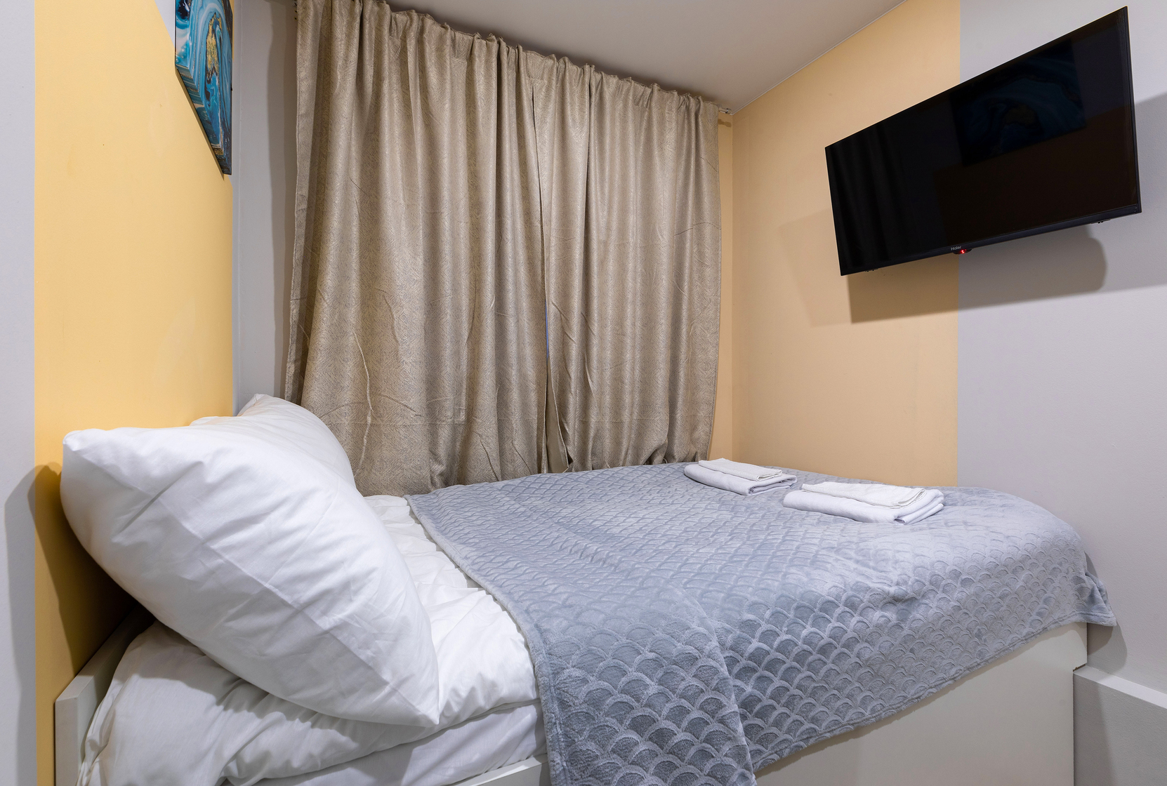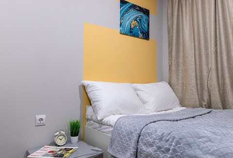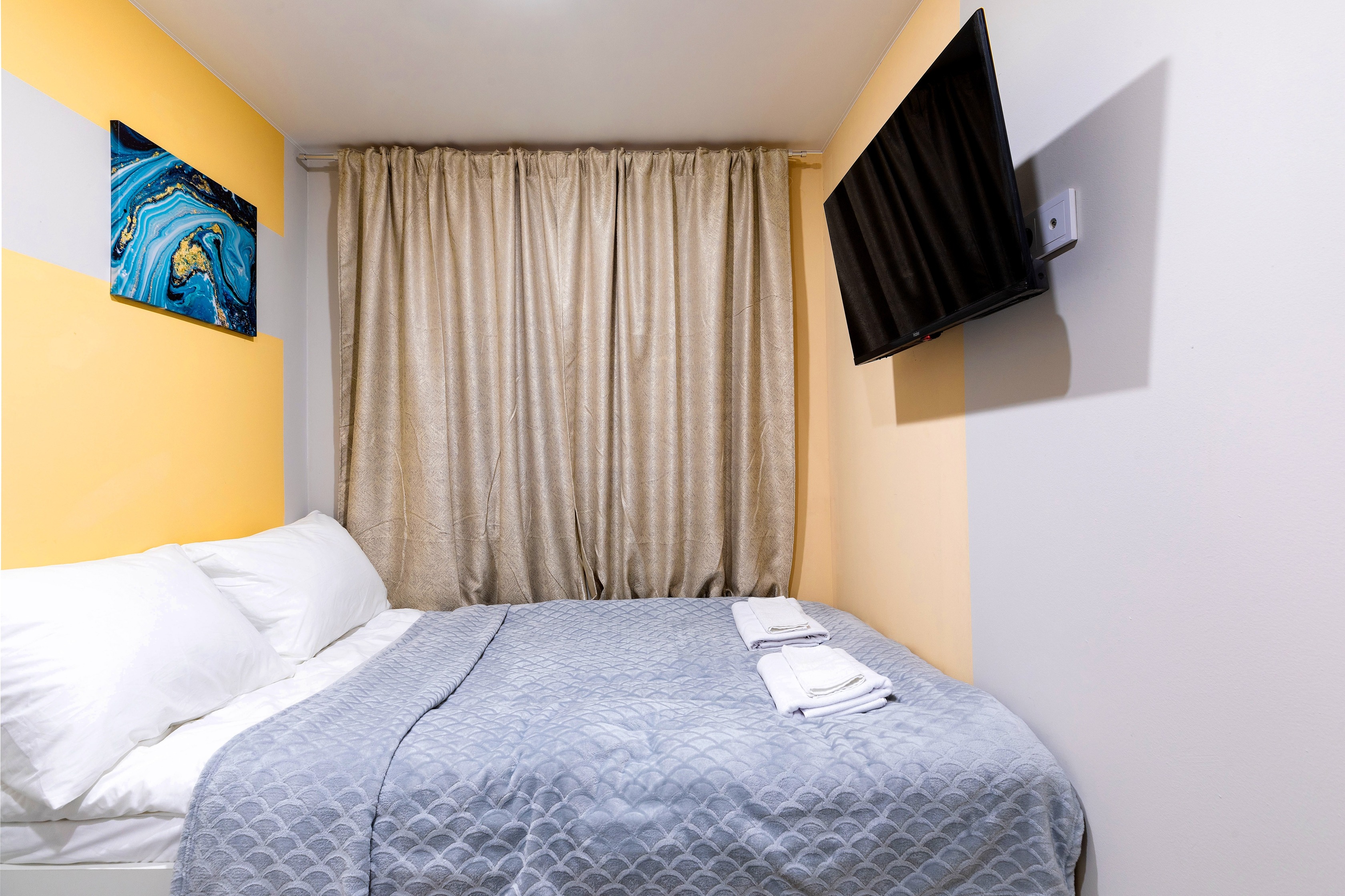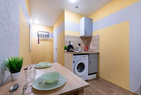 Апартаменты выполнены в современном стиле, установлена хорошая шумоизоляция. Удобные ортопедические матрасы, приятное освещение и комфортная температура в номерах сделает отдых еще более приятным.Каждый апартамент оборудован своей кухней и душем. Есть вся посуда для приготовления пищи, а также фен, утюг, полотенца, постельное белье, стиральная машина, телевизор со Смарт-ТВ, индукционная варочная плита, холодильник, бесплатный вай-фай, электрочайник.Метро в 10 минутах ходьбы, магазины и кафе в 5 минутах
