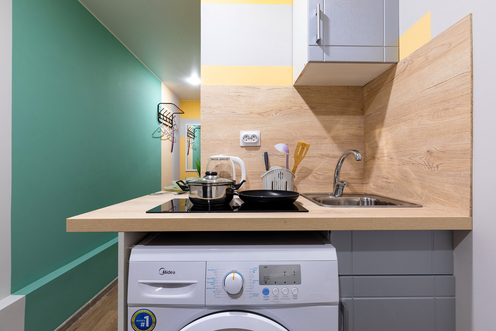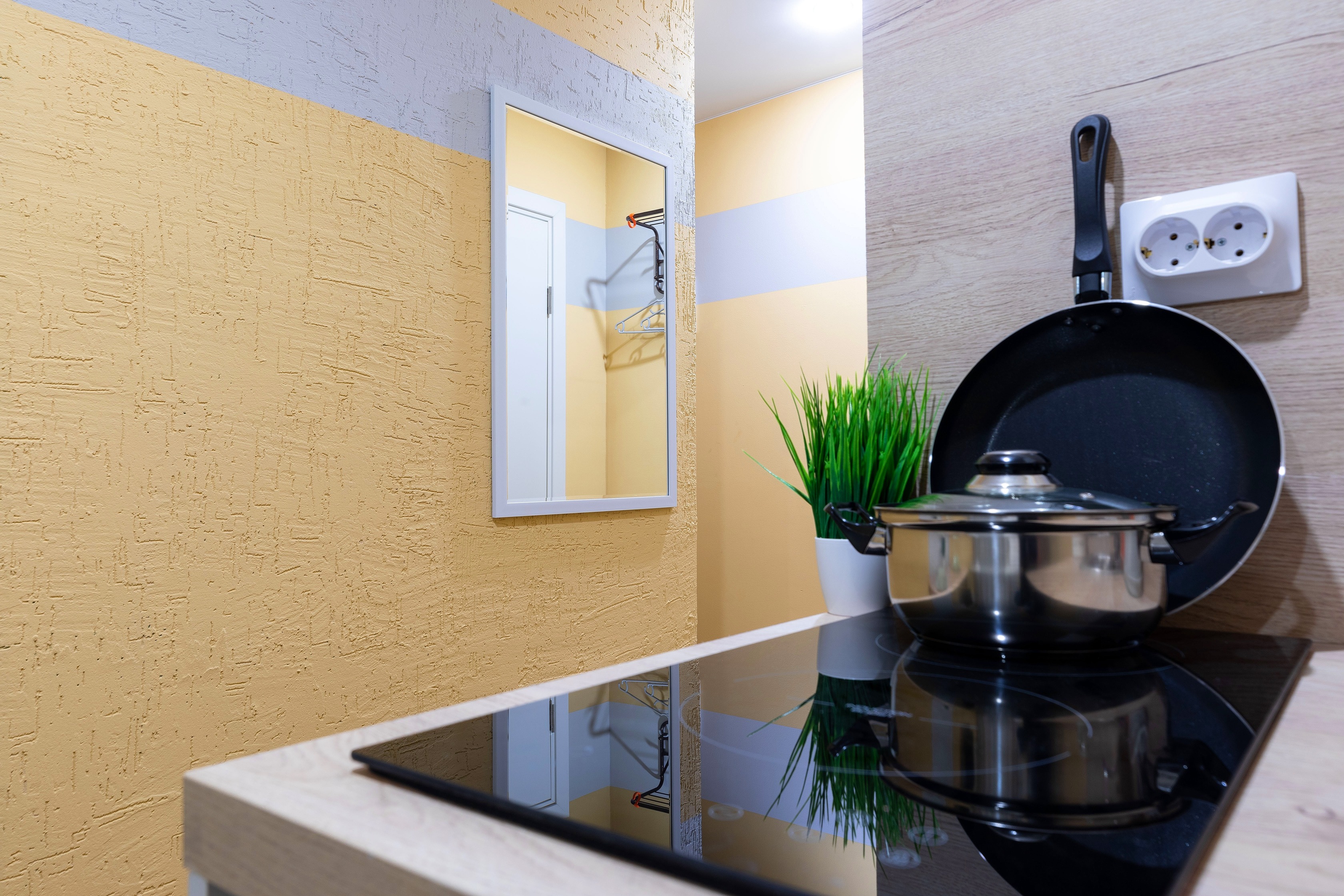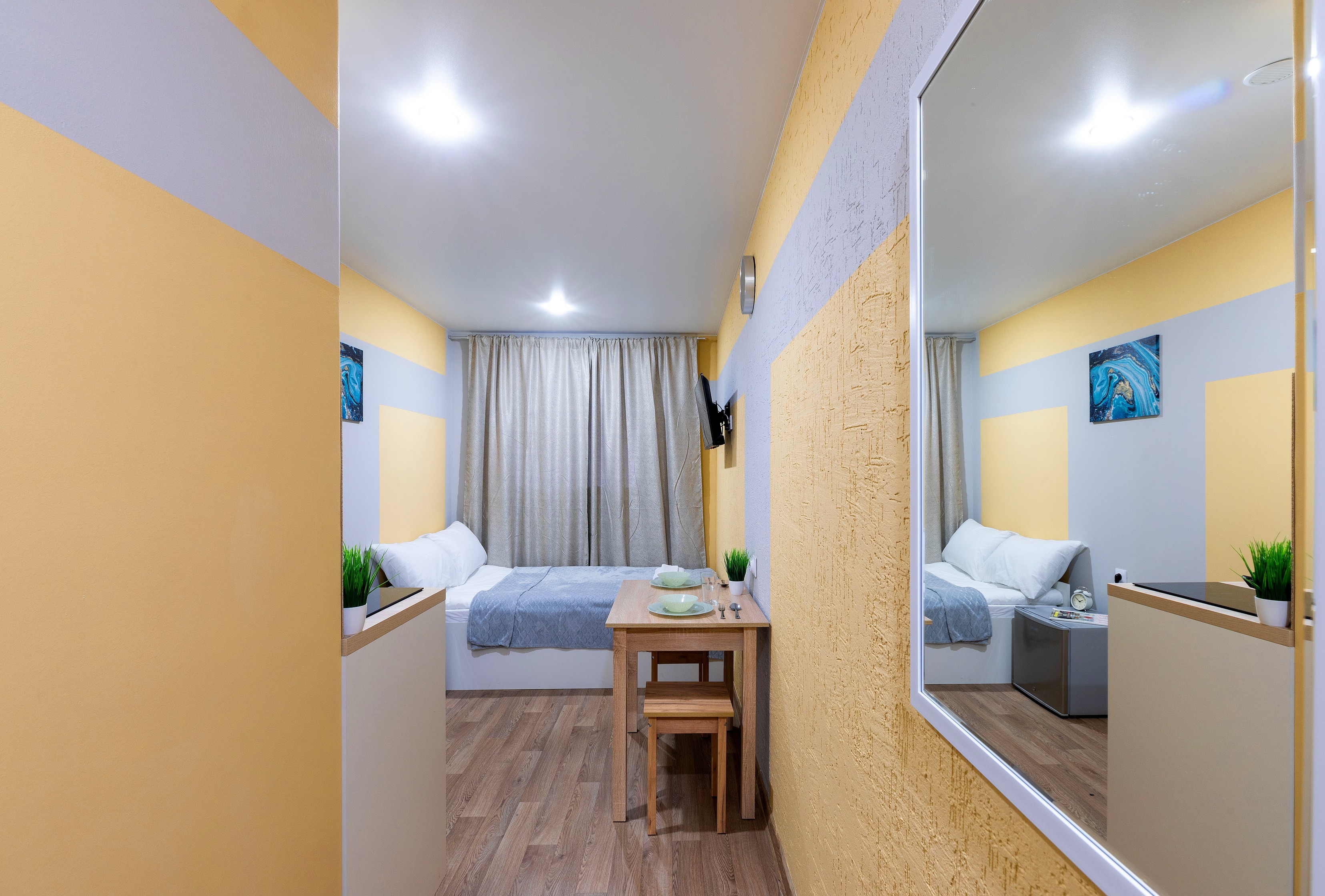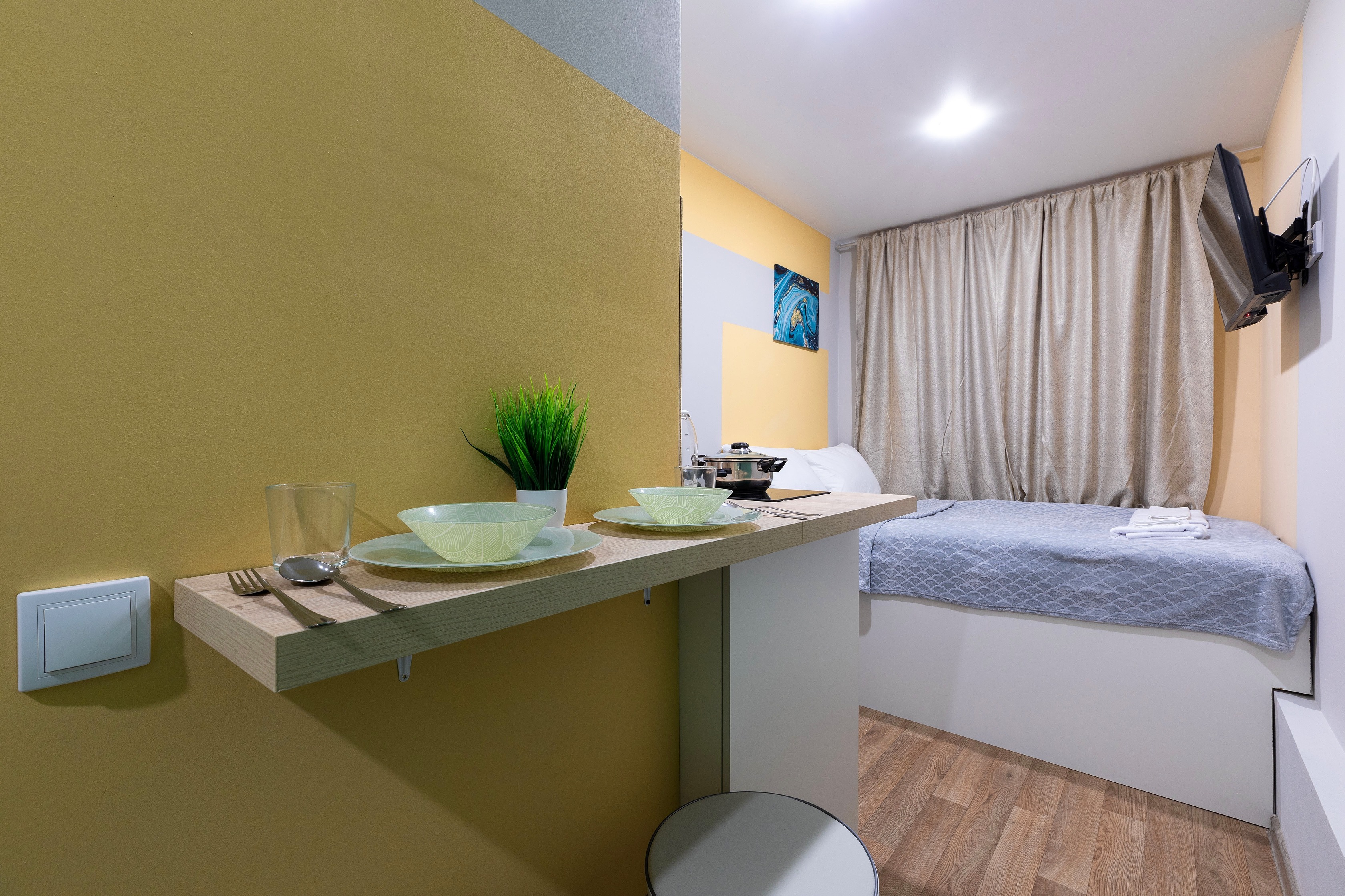 Апартаменты выполнены в современном стиле, установлена хорошая шумоизоляция. Удобные ортопедические матрасы, приятное освещение и комфортная температура в номерах сделает отдых еще более приятным.Каждый апартамент оборудован своей кухней и душем. Есть вся посуда для приготовления пищи, а также фен, утюг, полотенца, постельное белье, стиральная машина, телевизор со Смарт-ТВ, индукционная варочная плита, холодильник, бесплатный вай-фай, электрочайник.Метро в 10 минутах ходьбы, магазины и кафе в 5 минутах