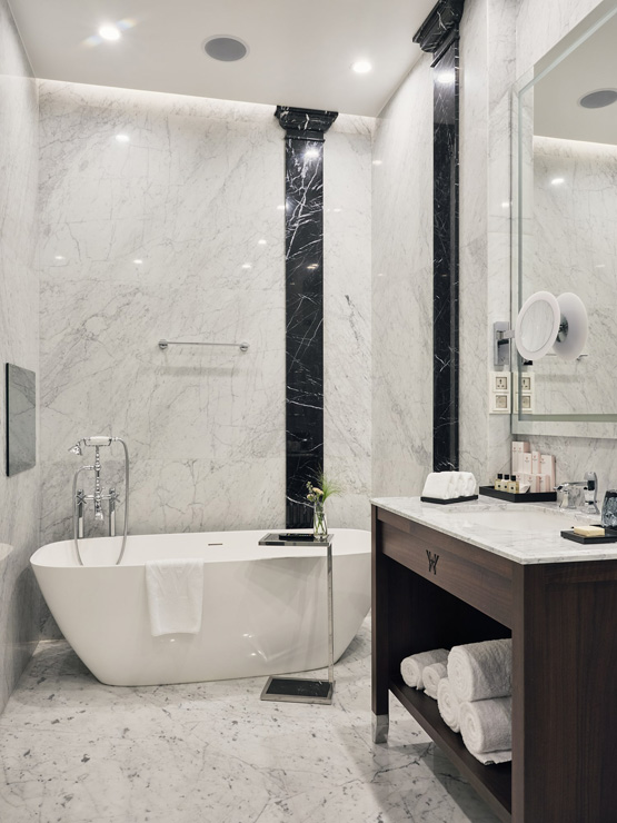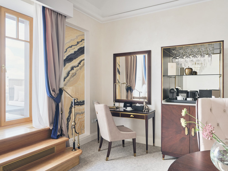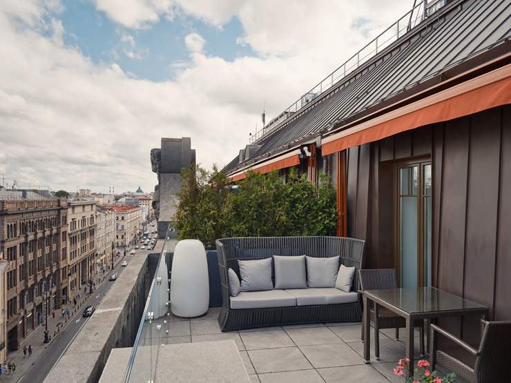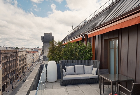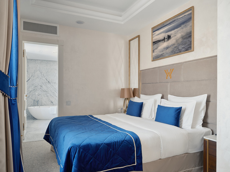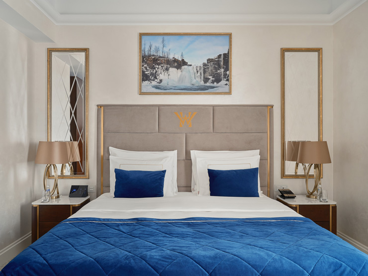 Шестиэтажный корпус отеля выделяется среди других построек своей необычной архитектурой — здание стилизовано под городское палаццо эпохи Возрождения. В распоряжении гостей комфортабельные номера, оснащенные ультрасовременными удобствами: системой «умный дом», iPad для дистанционного управления освещением и климатом в номере, а также интерактивной системой заказа всего спектра гостиничных услуг. Помимо этого, в каждом номере предусмотрена просторная ванная комната, есть кофемашина, плазменный телевизор, установлена сплит-система. В отеле работает ресторан Atrio, где гостям предлагается меню здорового питания от профессионального нутрициолога. Здесь можно провести и камерное торжественное мероприятие — зал ресторана вмещает до 45 приглашенных. Также в отеле организован Speakeasy Bar «THE» —двухуровневое пространство с видом на крыши исторического центра Петербурга. Отличительной особенностью места считается raw-бар с живыми устрицами, моллюсками, ежами, мидиями и крабами. Для любителей расслабиться в отеле организована уютная зона wellness с сауной, джакузи, ледяным фонтаном и тренажерным залом. А для проведения церемоний, торжественных мероприятий предусмотрен Wawelberg Hall — мультимедийное пространство с восстановленными интерьерами эпохи неоренессанса, оснащенное высокотехнологическим оборудованием.