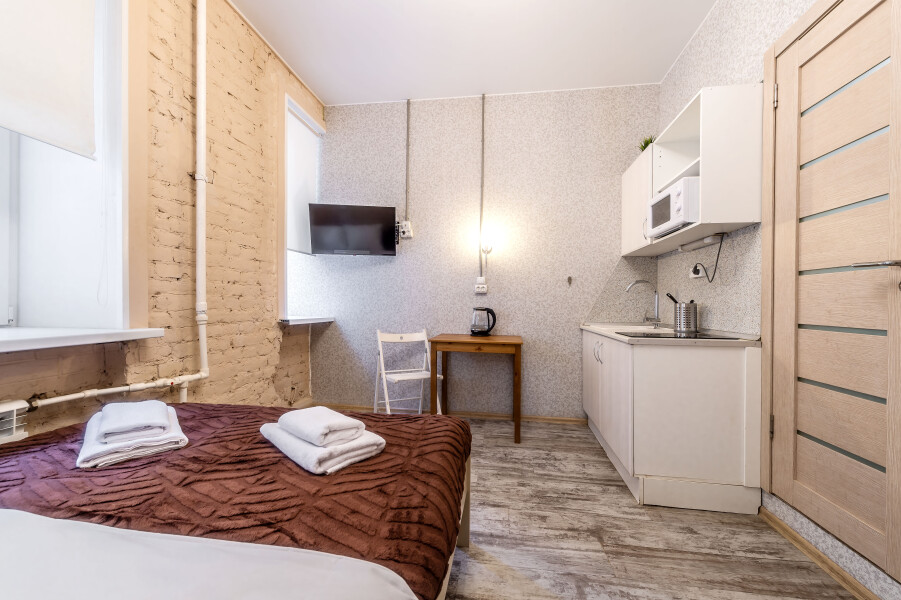 В сердце Северной столицы, в Санкт-Петербурге, всего в нескольких шагах от Некрасовского сада, находятся апартаменты «Юнга». Удобное расположение рядом с остановками общественного транспорта и станцией метро обеспечивает быстрый доступ к любой точке города.Для комфортного проживания предлагаются две просторные, со вкусом оформленные квартиры. В каждой из них имеется все необходимое: удобные двуспальные кровати с чистым постельным бельем, диван, кондиционер, телевизор, утюг и гладильная доска, бесплатный Wi-Fi для доступа в интернет, а также шкаф для одежды.