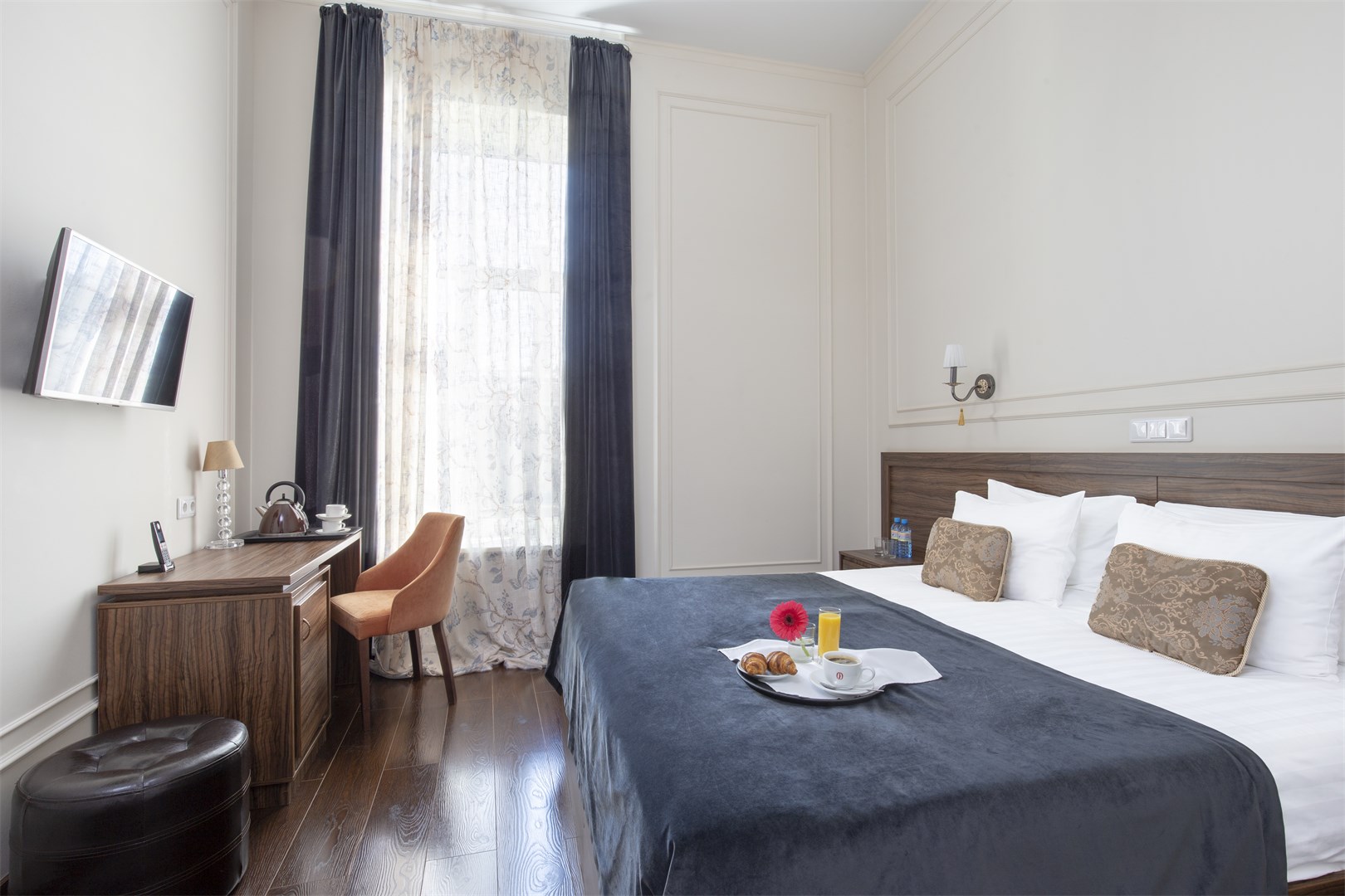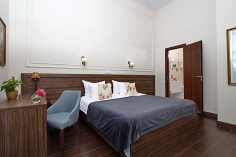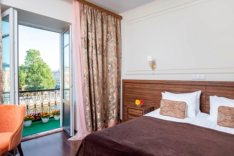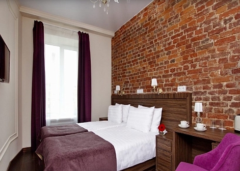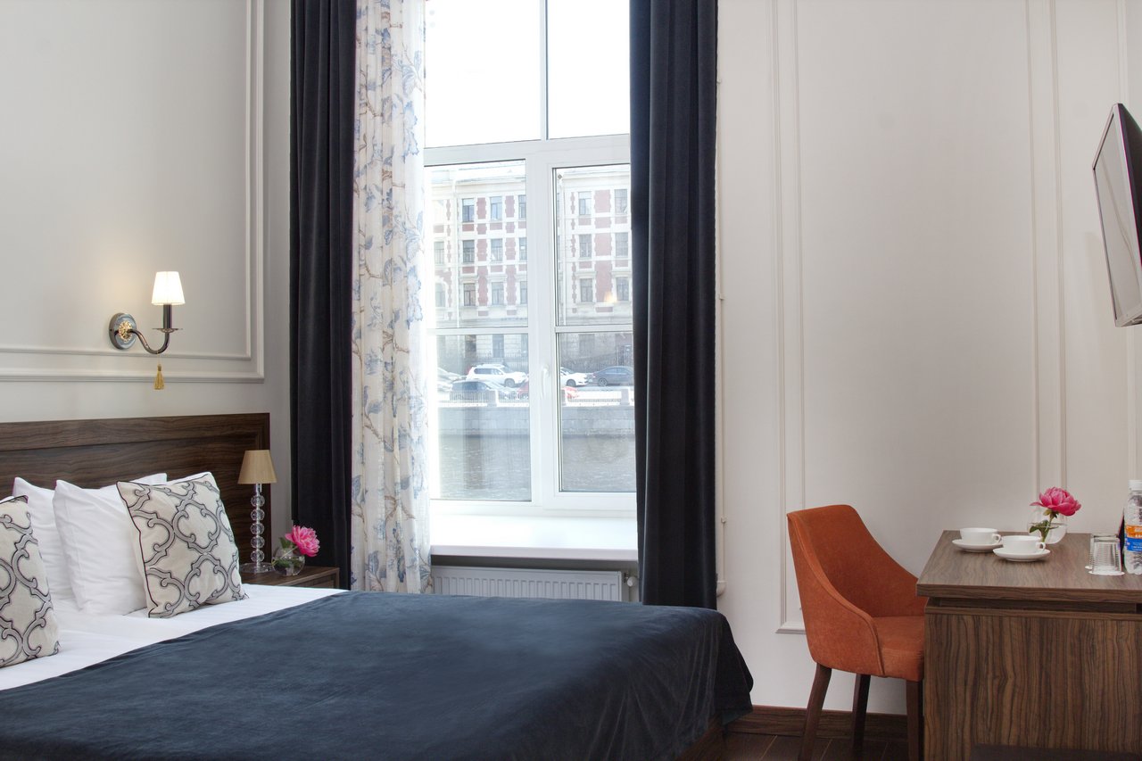 А до основных культурных достопримечательностей — Эрмитажа, Русского музея, Исаакиевского или Казанского собора можно прогуляться пешком. Большинство номеров отеля находятся в трехэтажном здании, расположенном в исторической ансамблевой застройке на набережной реки Фонтанки. Часть комнат разместилась в другом пятиэтажном здании — также на набережной, но в 200 метрах от главного корпуса. Всех отдыхающих ожидают уютные двухместные номера разной категории комфорта. Комнаты, оформленные в приятной гамме с использованием пастельных и шоколадных оттенков, оснащены необходимой бытовой техникой и санузлом с душевой кабиной. В номерах улучшенной категории есть джакузи и установлен кондиционер. В отеле работает ресторан вьетнамской кухни, где по утрам подаются европейские завтраки. Среди услуг — беспроводной интернет, охраняемая автостоянка и возможность размещения с домашними питомцами.