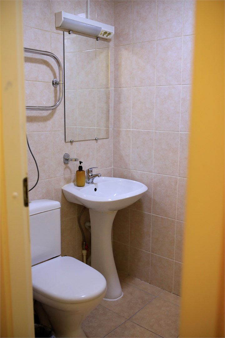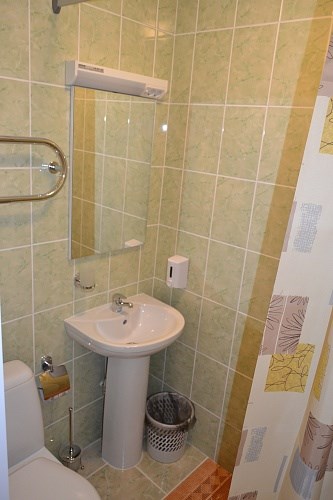 Санузел: с душем или ванной, тапочки, туалетные принадлежности, фен