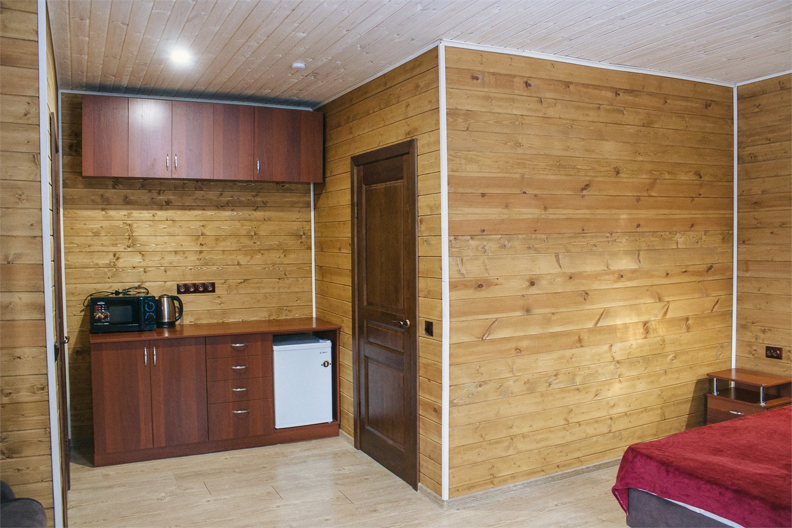 В номере: зеркало, кресло-кровать, кровати односпальные /одна двуспальная кровать, прикроватные тумбочки, стол, столик журнальный, стулья, микроволновая печь, набор посуды, холодильник, электрочайник