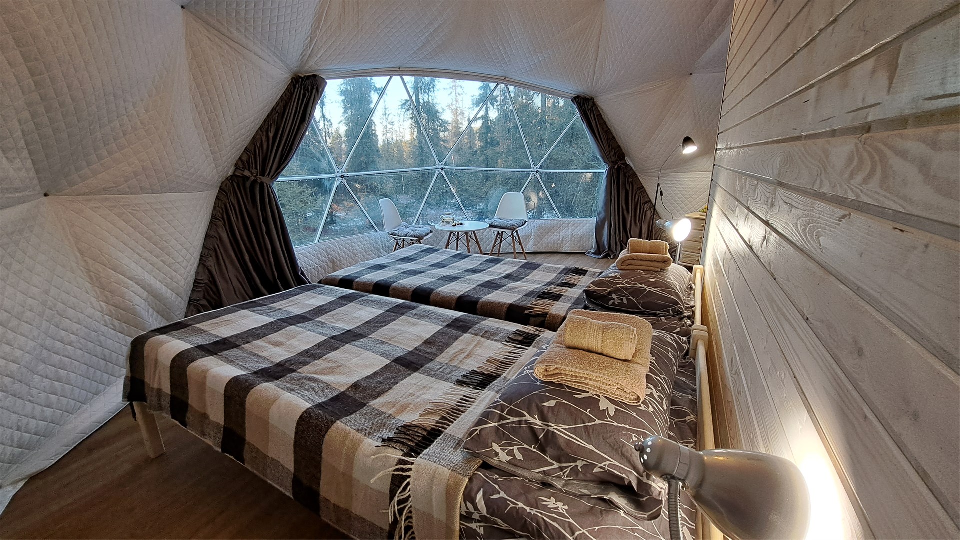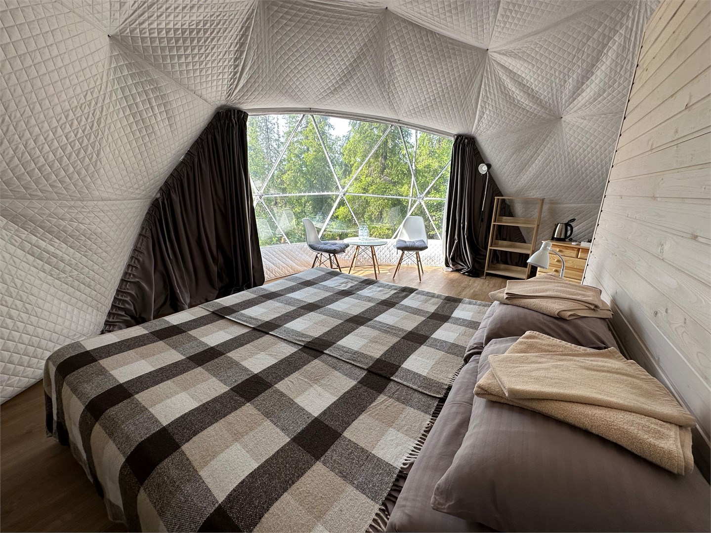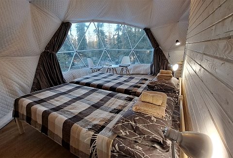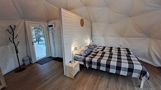 В коттеджах есть ванная комната с душем, кухонный уголок с микроволновкой, электрочайником, мини-холодильником и посудой.На улице обустроена мангальная зона и комфортабельные крытые беседки, самая вместительная из которых рассчитана на 25 человек. Среди услуг — баня с чаном на улице, зимой доступен прокат снегоходов. Кроме того, на территории Лапландской деревни находится питомник ездовых собак, желающие могут познакомиться с пушистыми жителями и покататься в собачьих упряжках.