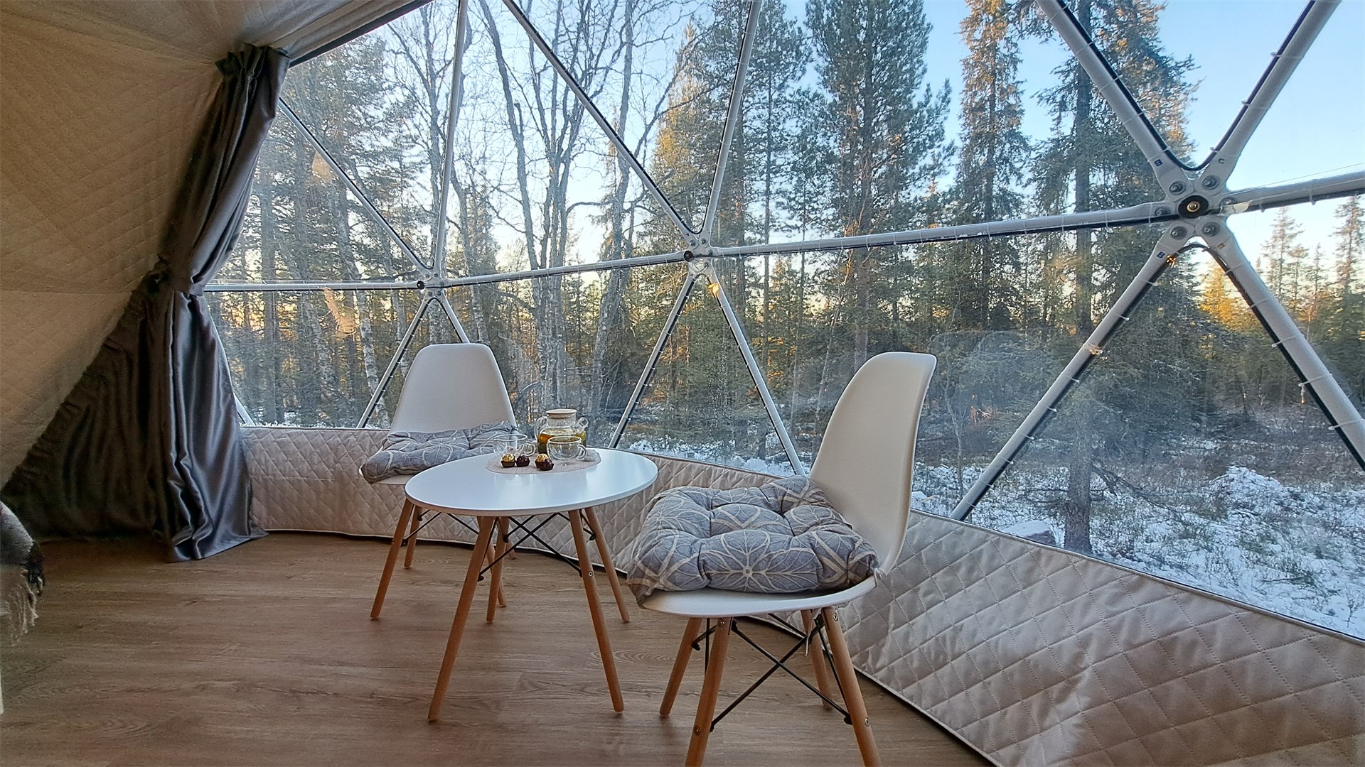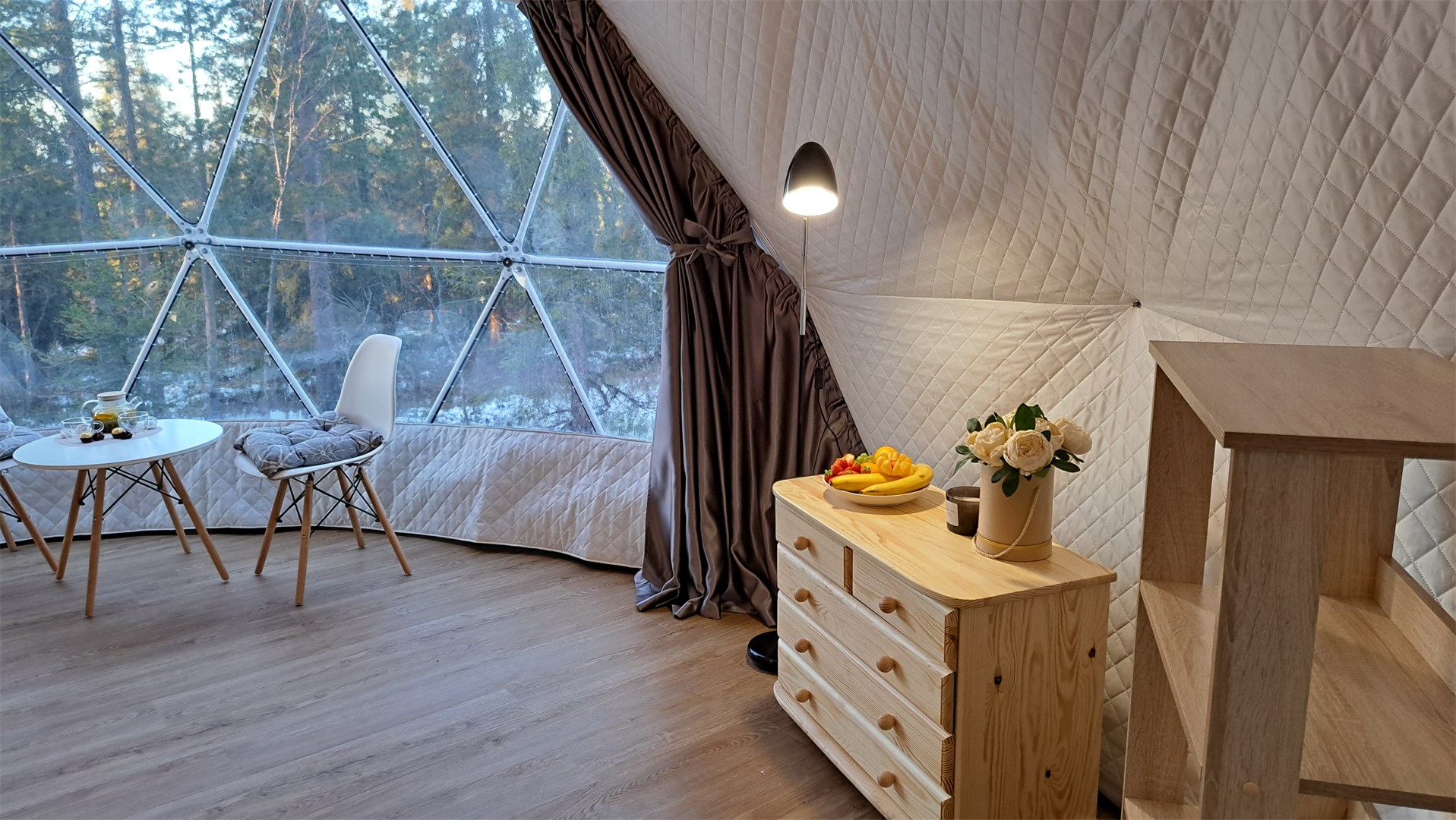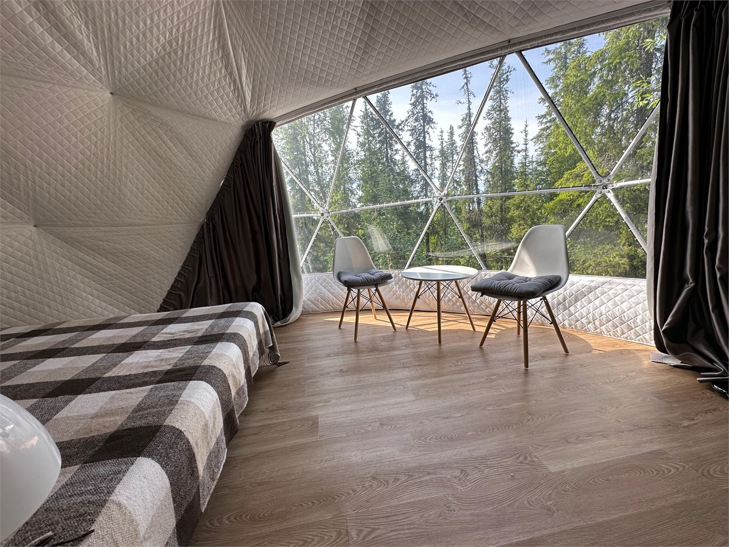 В коттеджах есть ванная комната с душем, кухонный уголок с микроволновкой, электрочайником, мини-холодильником и посудой.На улице обустроена мангальная зона и комфортабельные крытые беседки, самая вместительная из которых рассчитана на 25 человек. Среди услуг — баня с чаном на улице, зимой доступен прокат снегоходов. Кроме того, на территории Лапландской деревни находится питомник ездовых собак, желающие могут познакомиться с пушистыми жителями и покататься в собачьих упряжках.