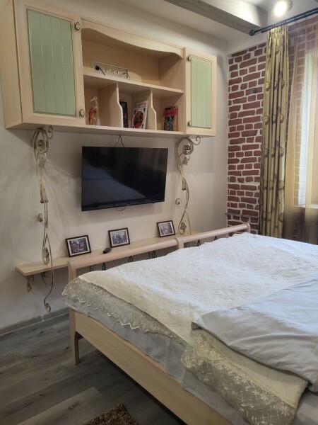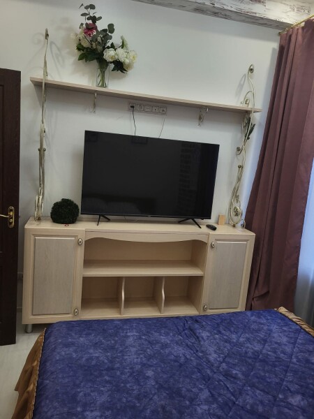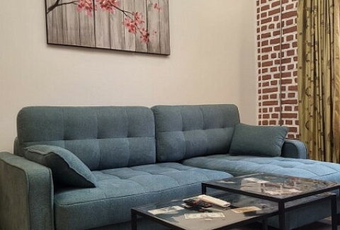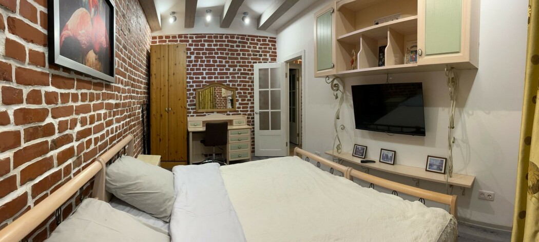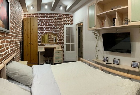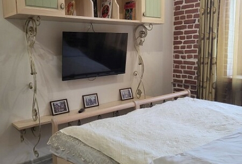 В номере: диван раскладной, кровать двуспальная, прикроватные тумбочки, стол, стулья, шкаф, духовой шкаф, микроволновая печь, набор посуды, плита электрическая, телевизор, холодильник, чайник