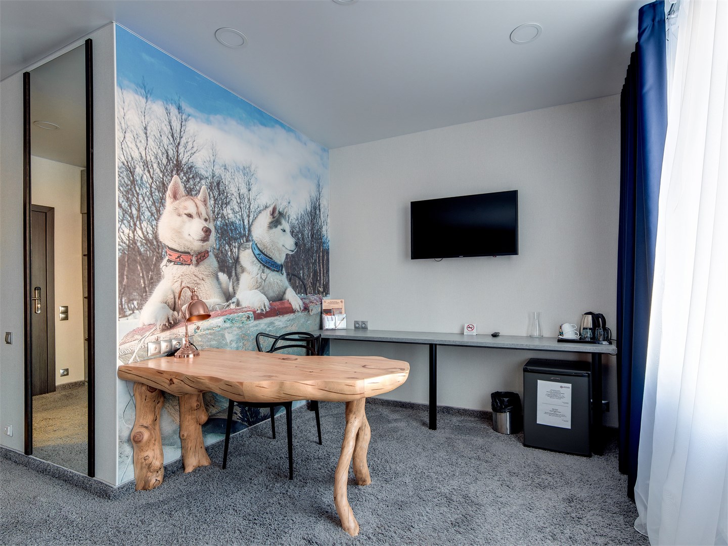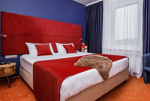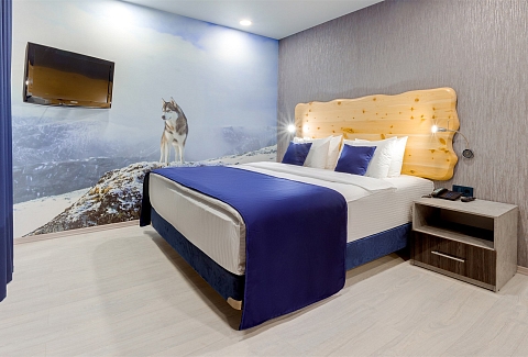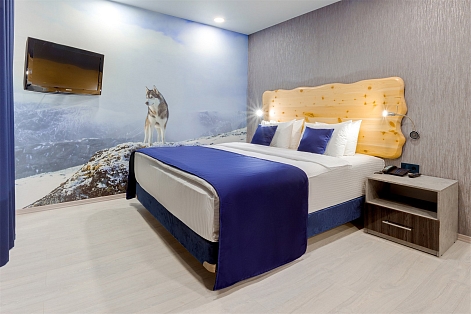 В номере: вешалка, зеркало, кровать двуспальная, прикроватные тумбочки, стол, стулья, шкаф, мини-холодильник, телевизор, телефон, чайный набор посуды, электрочайник