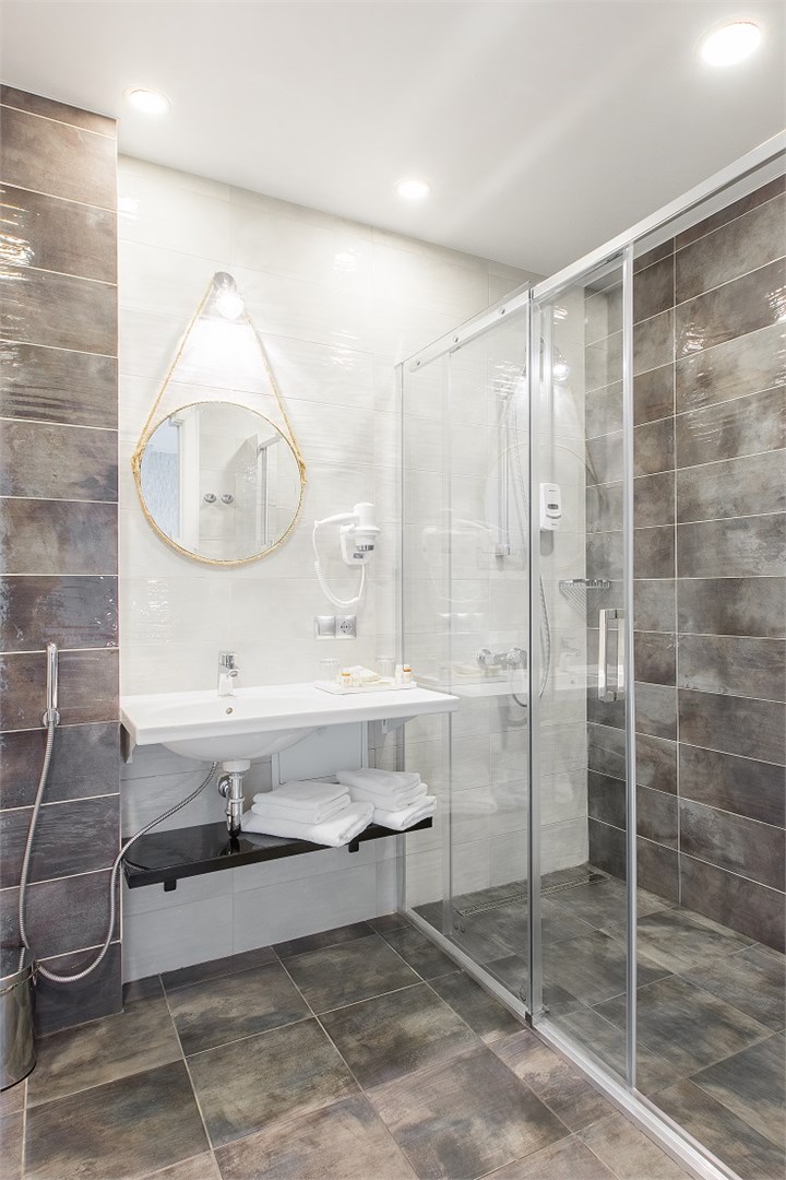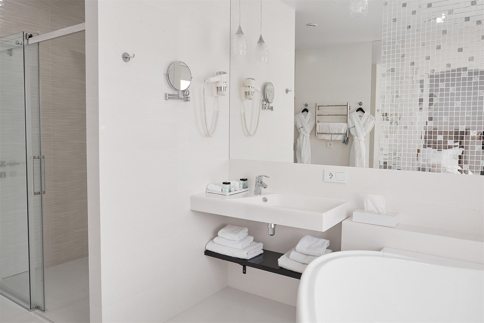 Санузел: с ванной, с душевой кабиной, тапочки, туалетные принадлежности, фен, халат