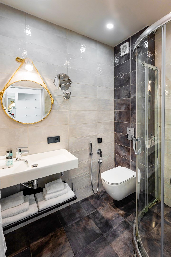 Санузел: биде, с душевой кабиной, тапочки, туалетные принадлежности, фен, халат