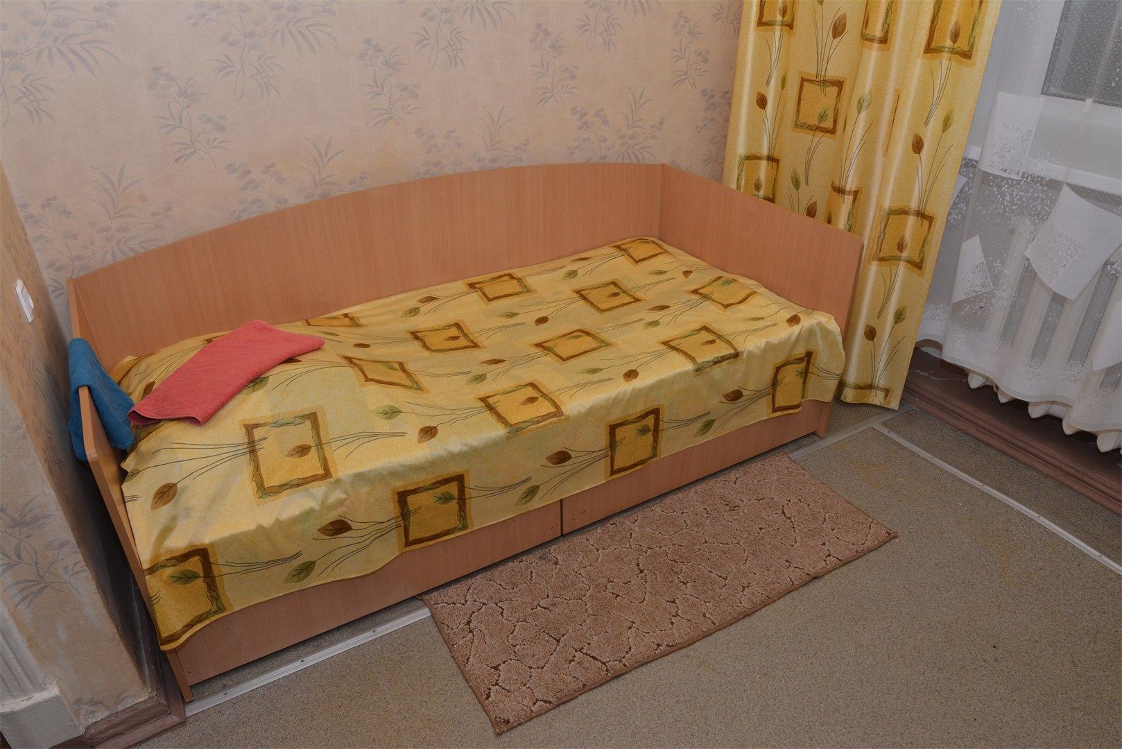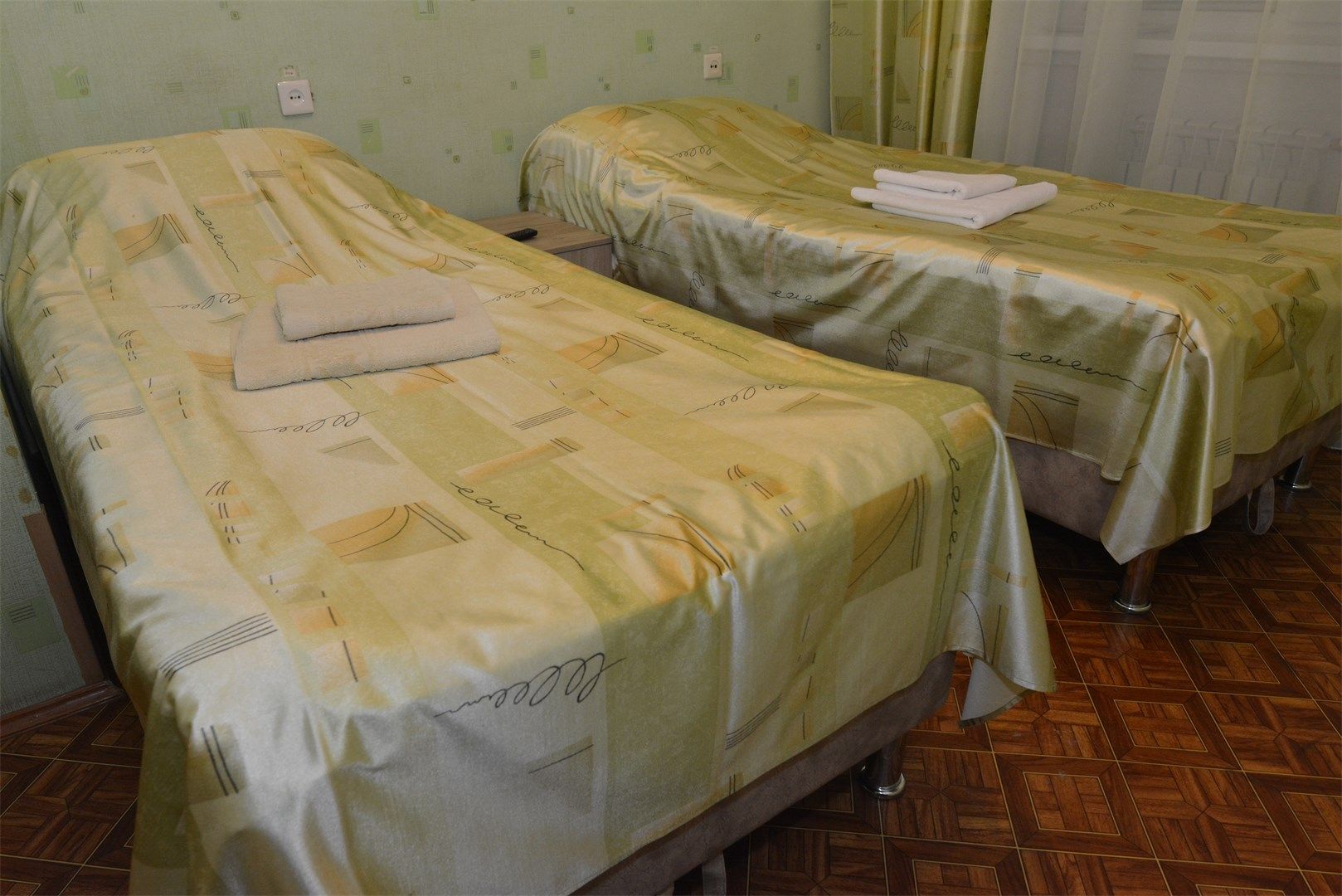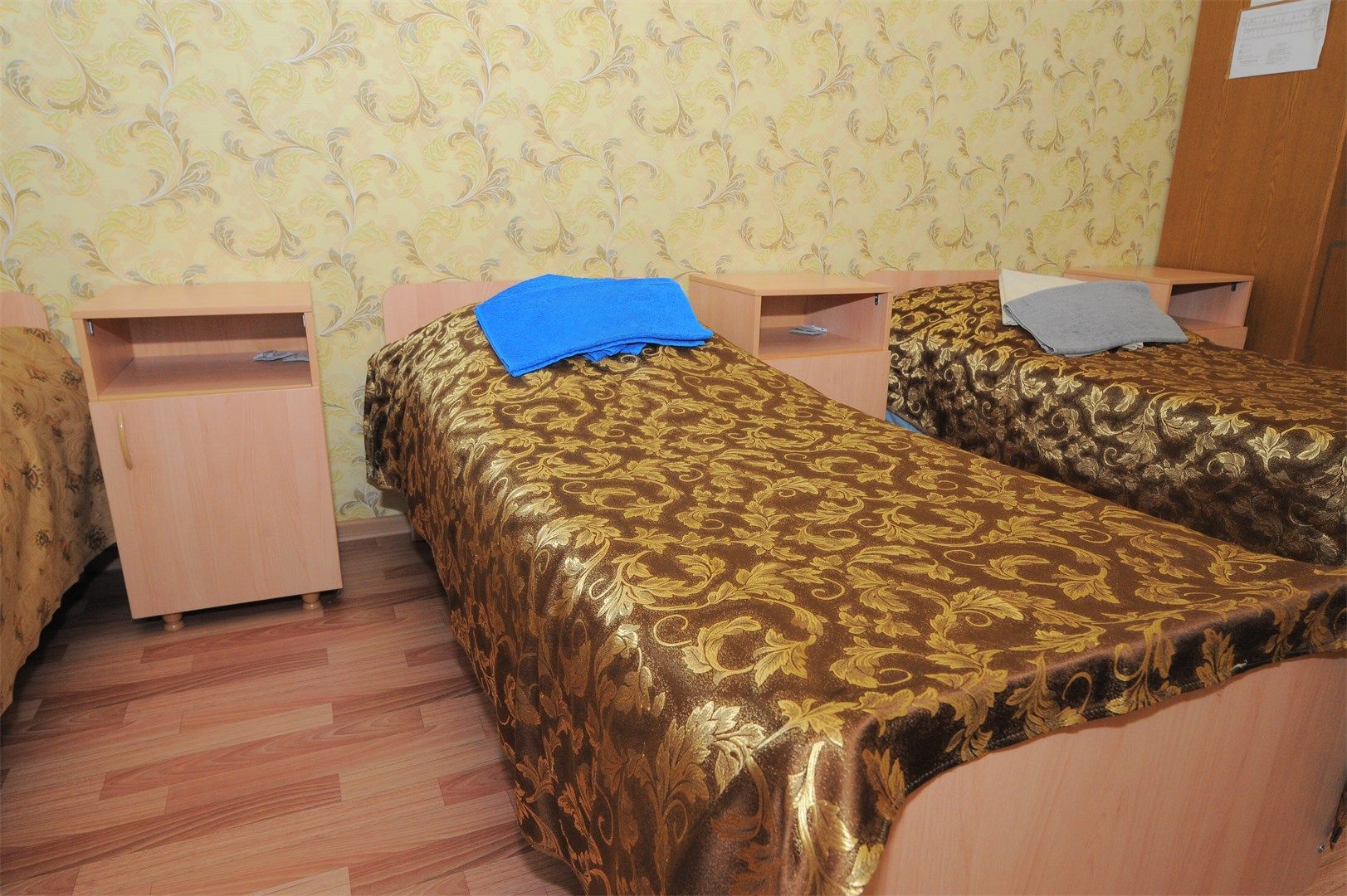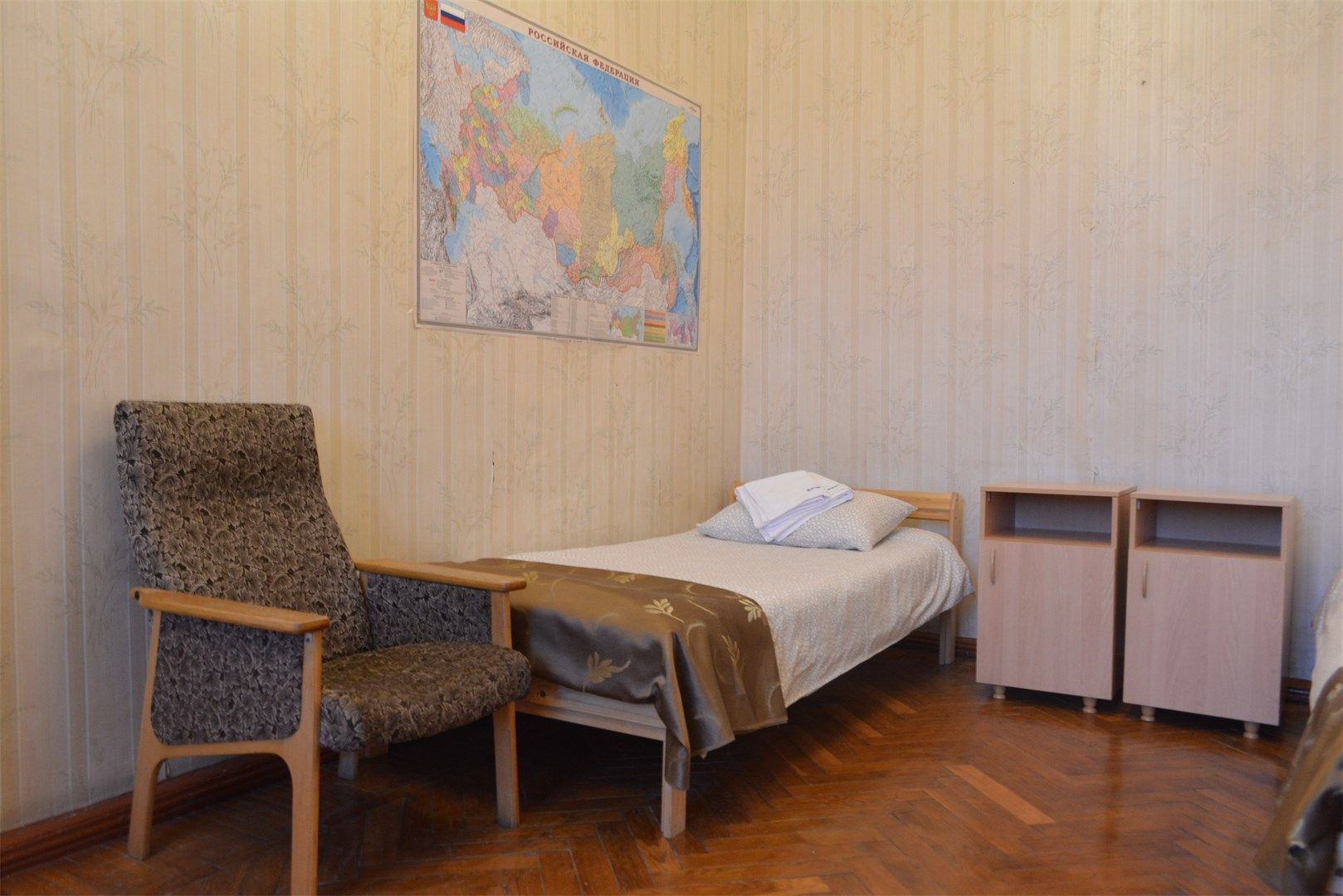 В номере: вешалка, зеркало, кровати односпальные, стол, стулья, шкаф, мини-холодильник, телевизор, чайный набор посуды, электрочайник