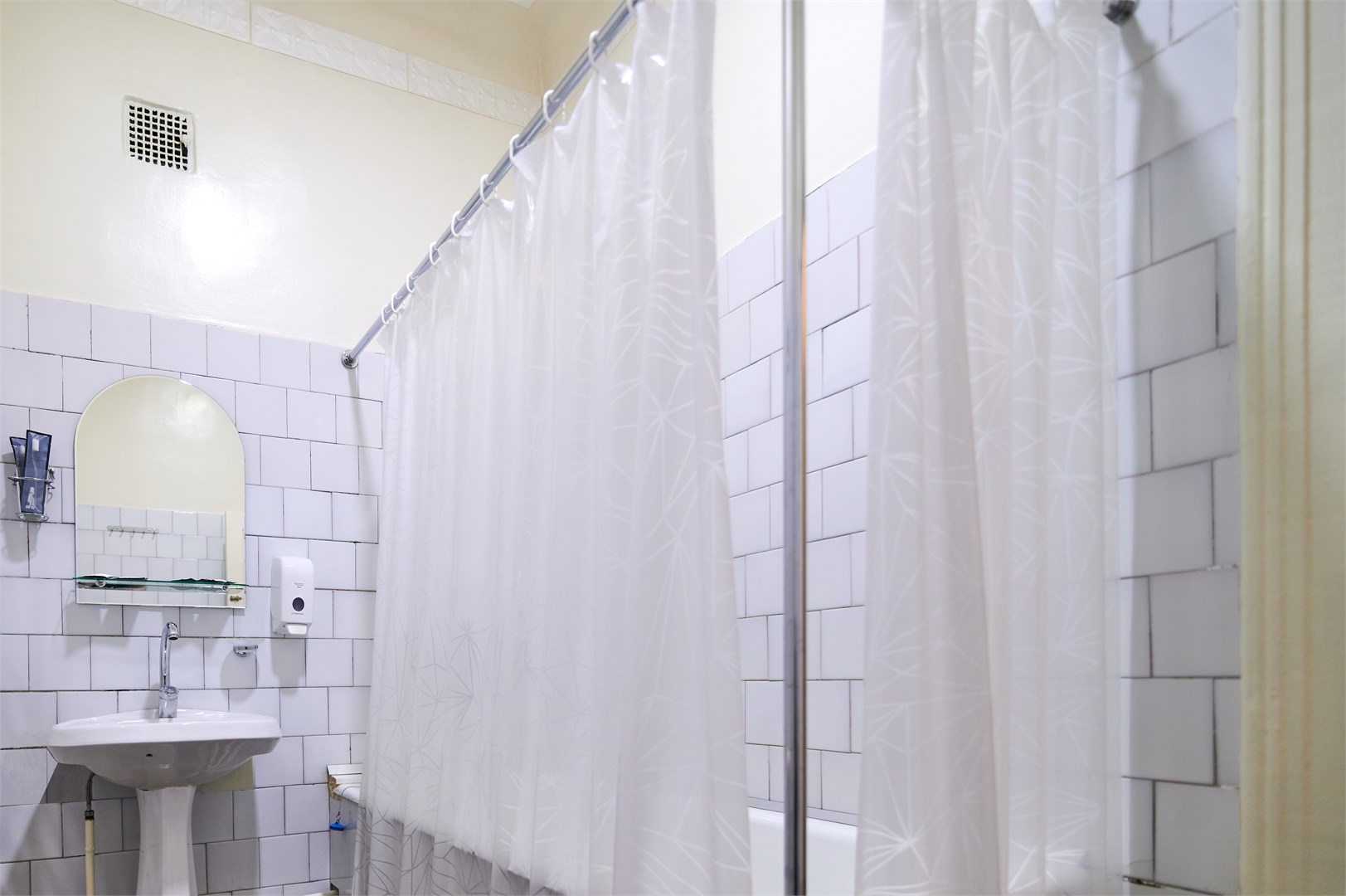 Санузел: с душем или ванной, тапочки, туалетные принадлежности, фен