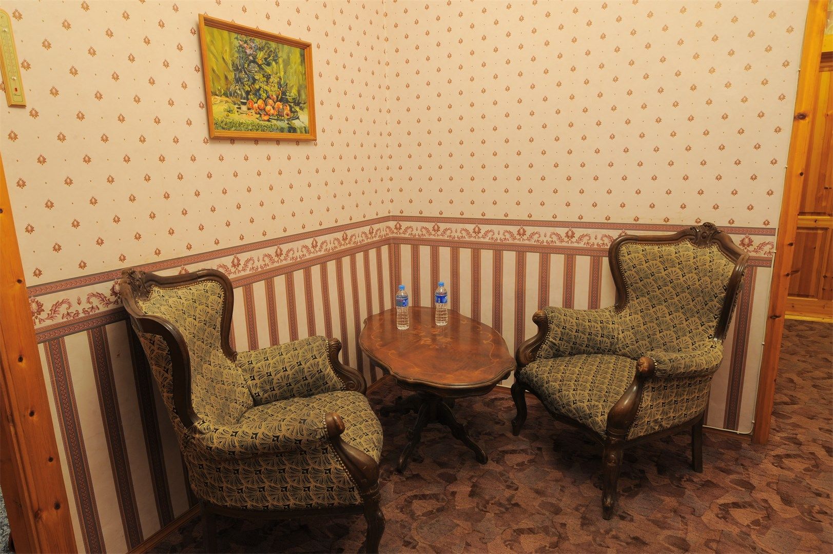В номере: кровати односпальные, прикроватные тумбочки, стол, стулья, шкаф, мини-холодильник, телевизор, чайная станция