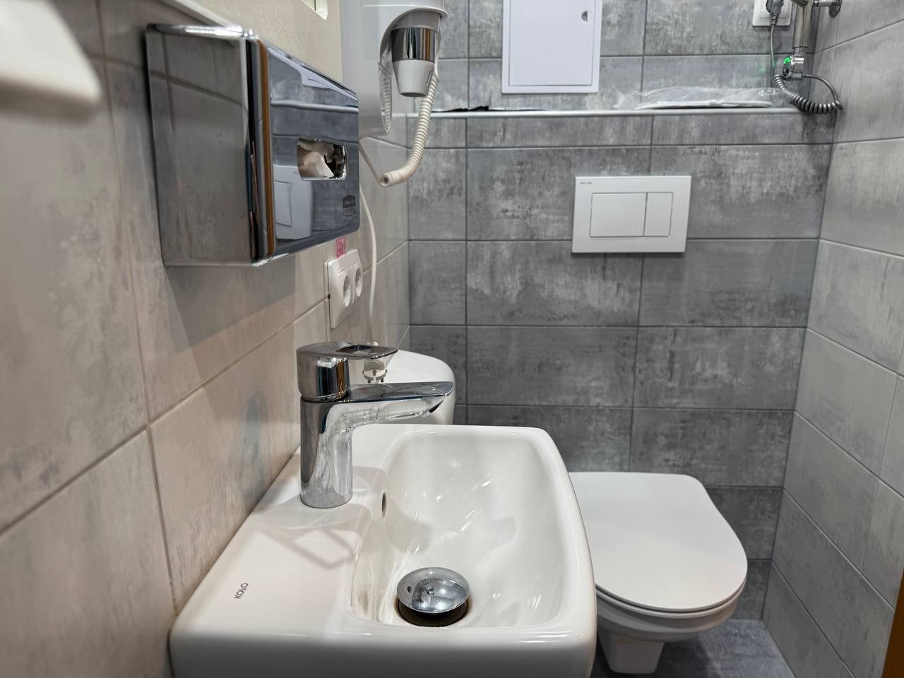 Санузел: с душевой кабиной, туалетные принадлежности, фен