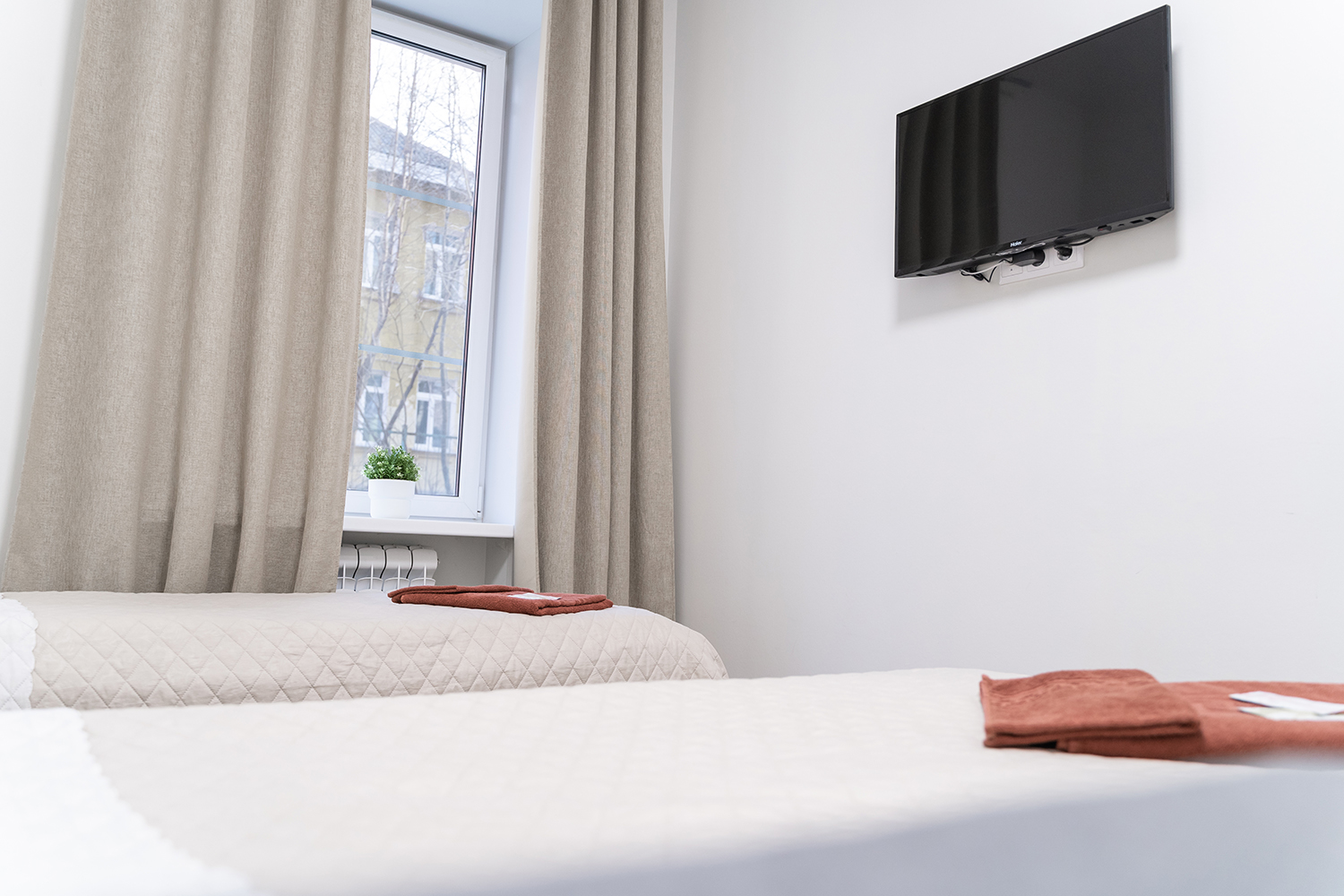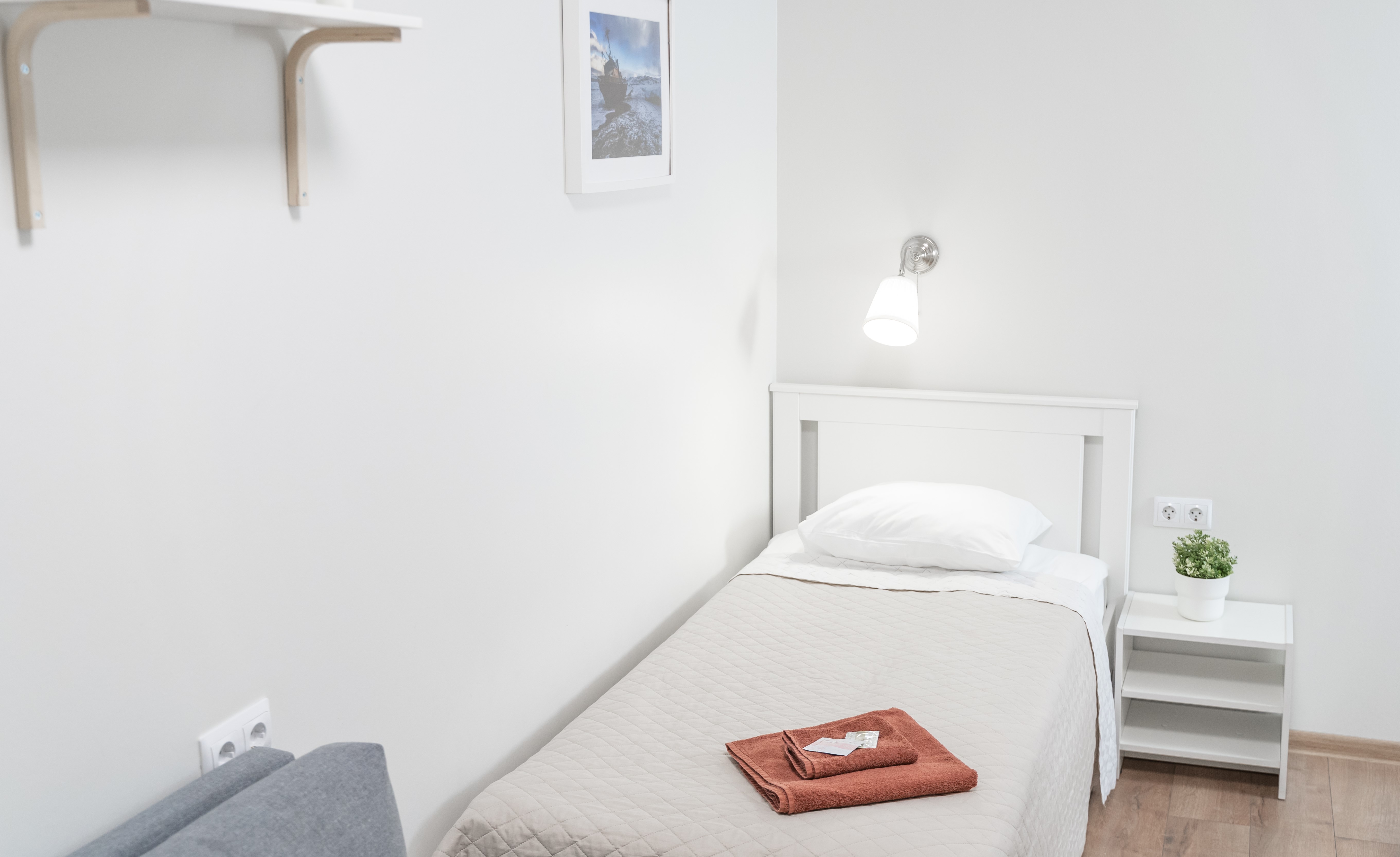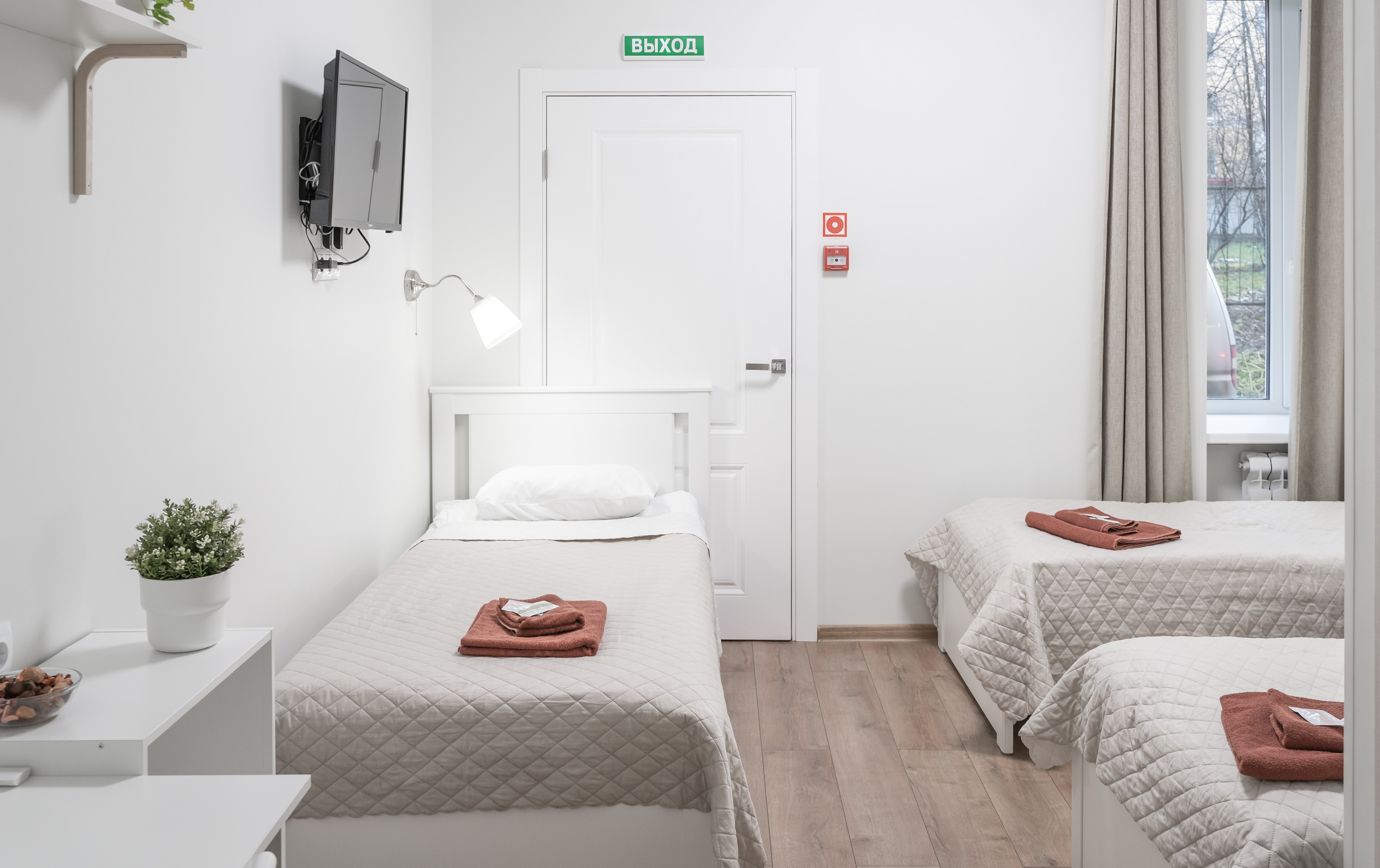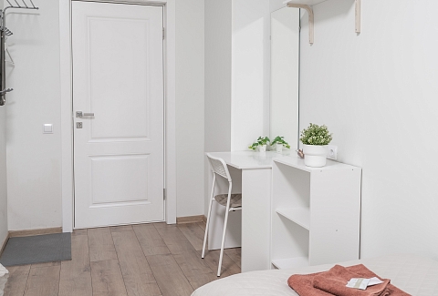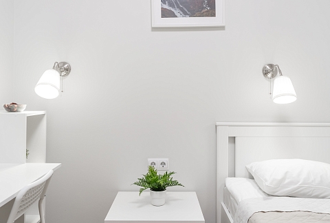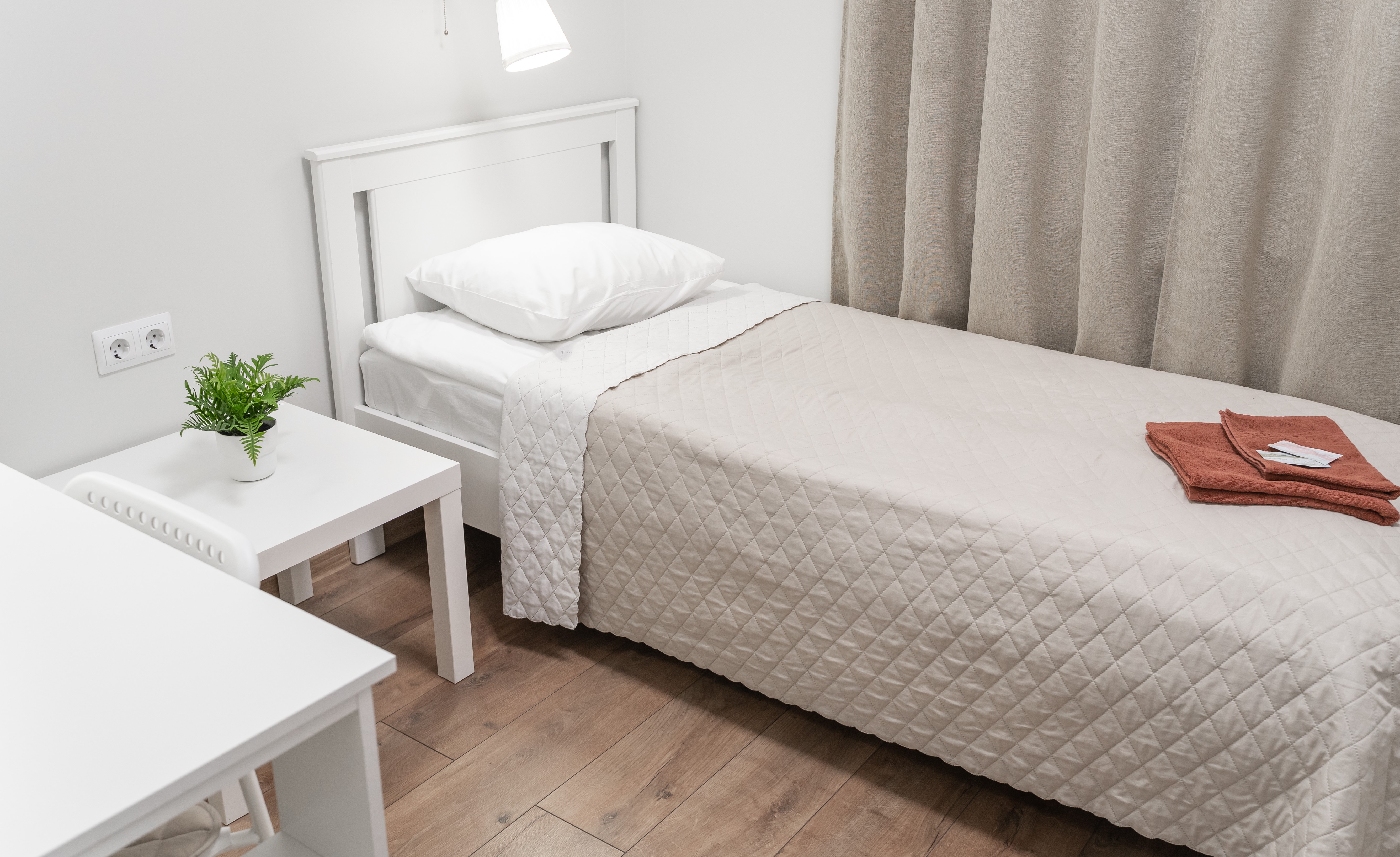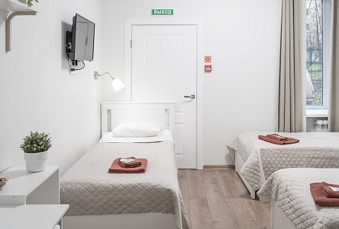В распоряжении гостей стандартные номера разные по площади и вместимости. В некоторых номерах санузел общий и находится на этаже, в других есть собственная ванная комната. Также во всех номерах имеются плазменный телевизор и рабочий стол. Для удобства отдыхающих в отеле предусмотрена общая кухня, оснащенная посудой и необходимой техникой: есть холодильник, электрическая плита, микроволновая печь. Как в номерах, так и в общих зонах доступен беспроводной интернет.