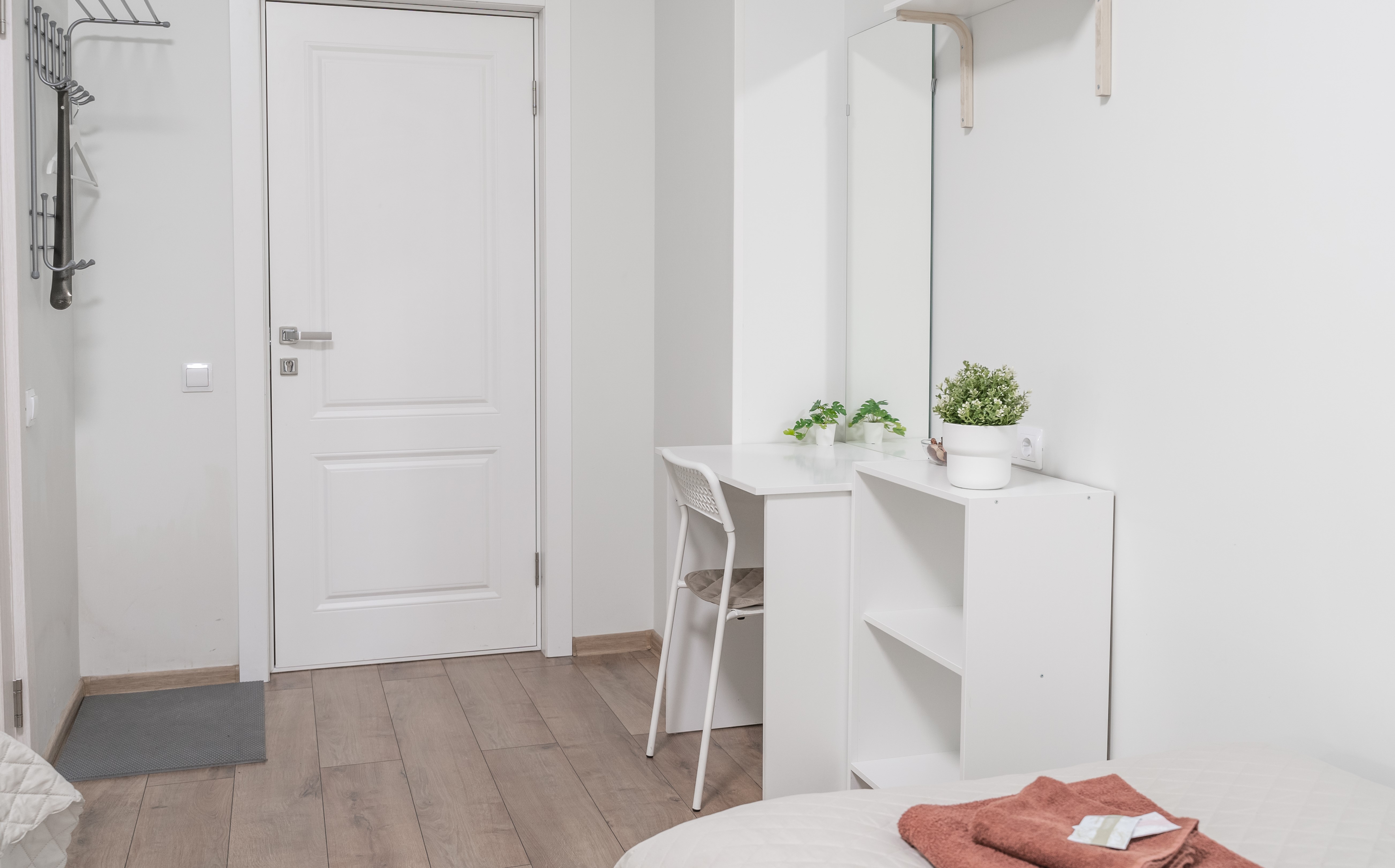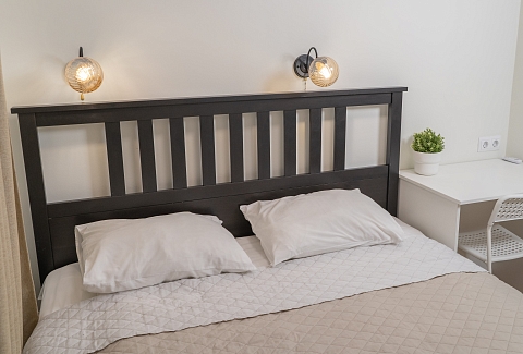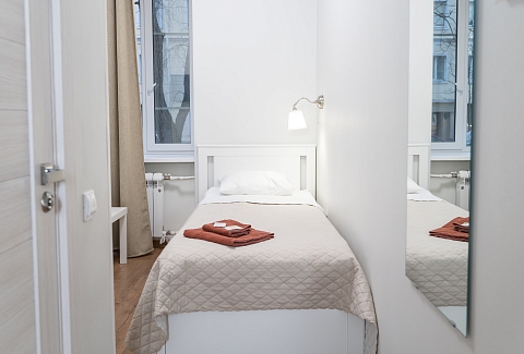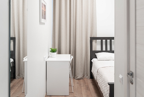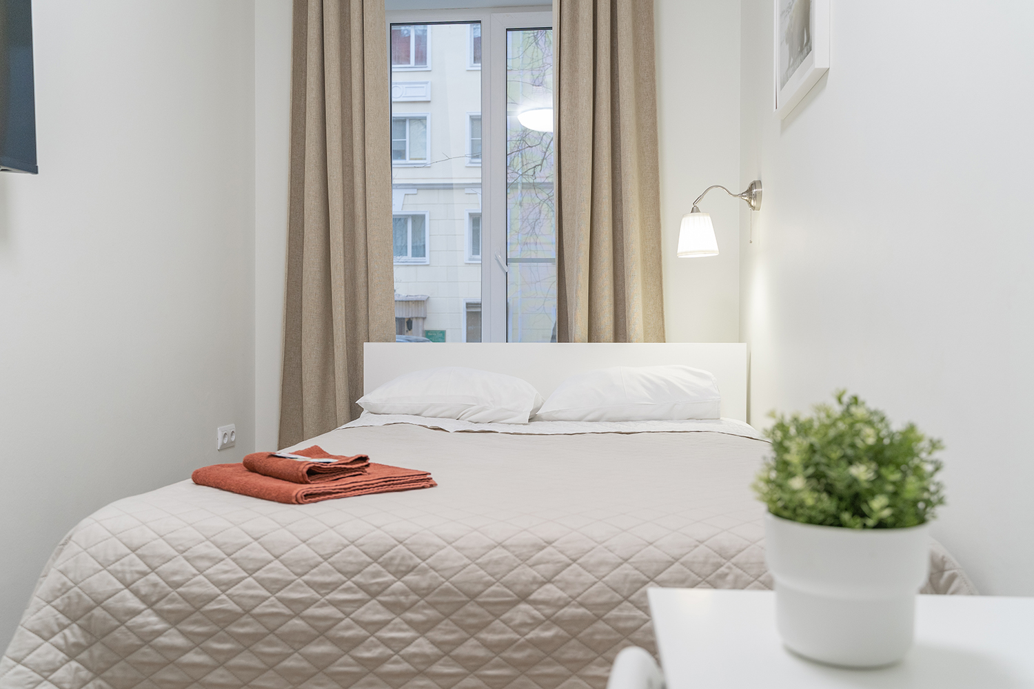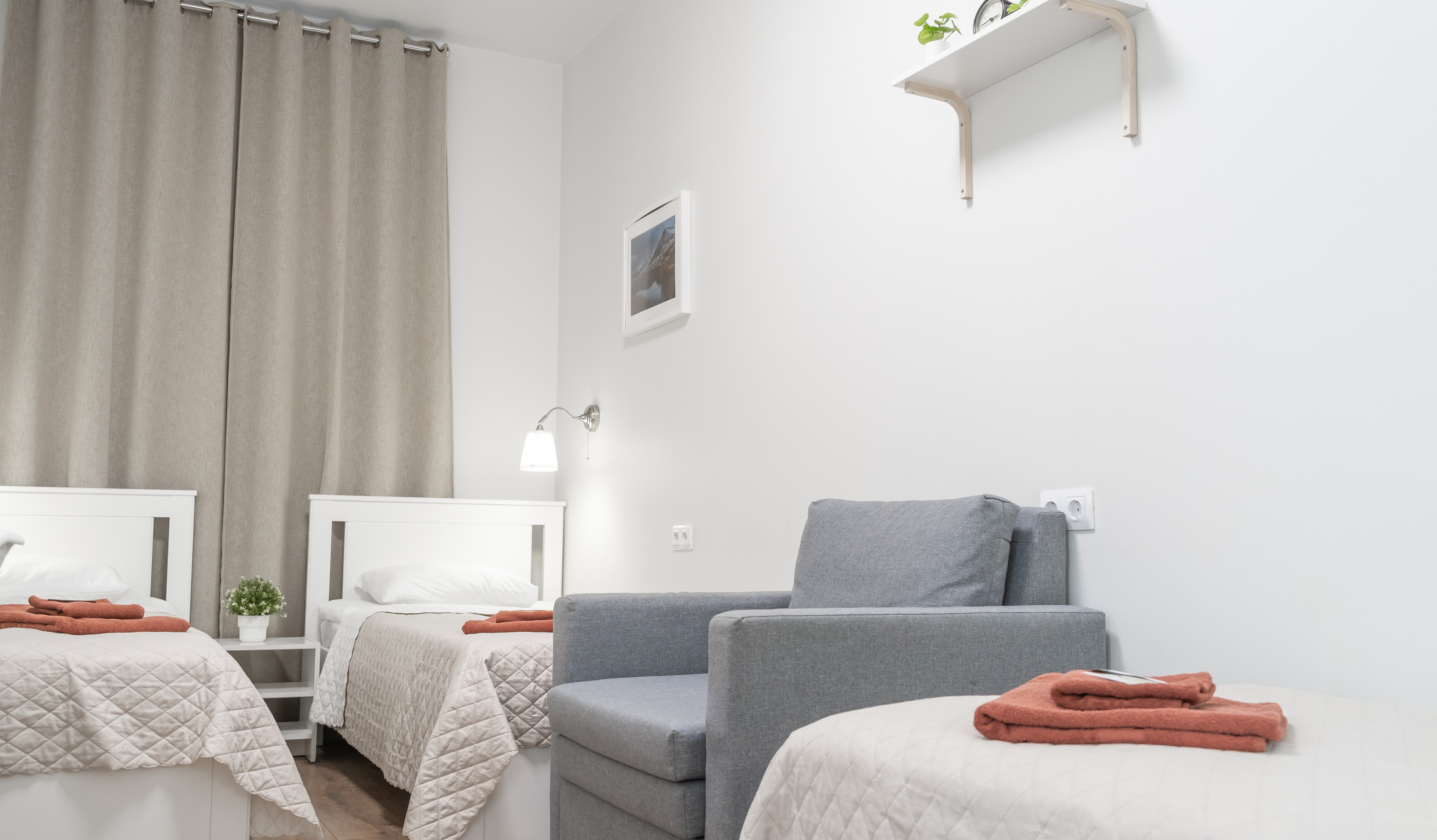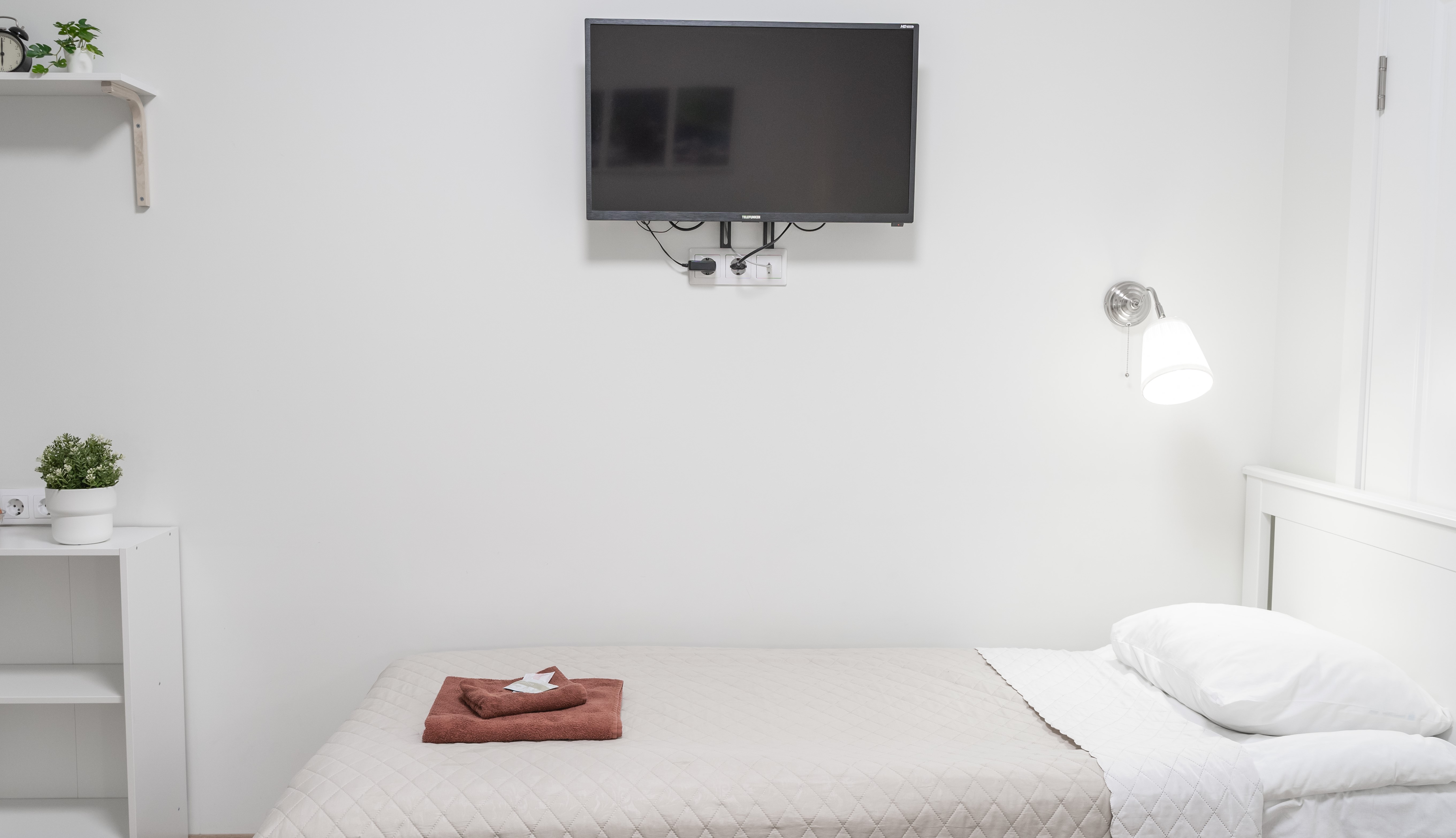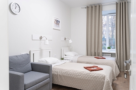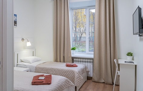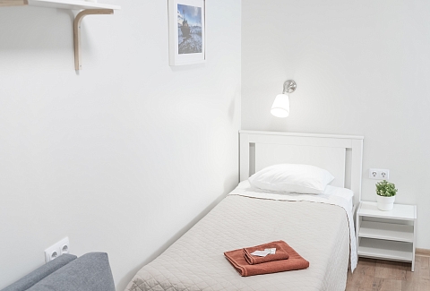 В распоряжении гостей стандартные номера разные по площади и вместимости. В некоторых номерах санузел общий и находится на этаже, в других есть собственная ванная комната. Также во всех номерах имеются плазменный телевизор и рабочий стол. Для удобства отдыхающих в отеле предусмотрена общая кухня, оснащенная посудой и необходимой техникой: есть холодильник, электрическая плита, микроволновая печь. Как в номерах, так и в общих зонах доступен беспроводной интернет.