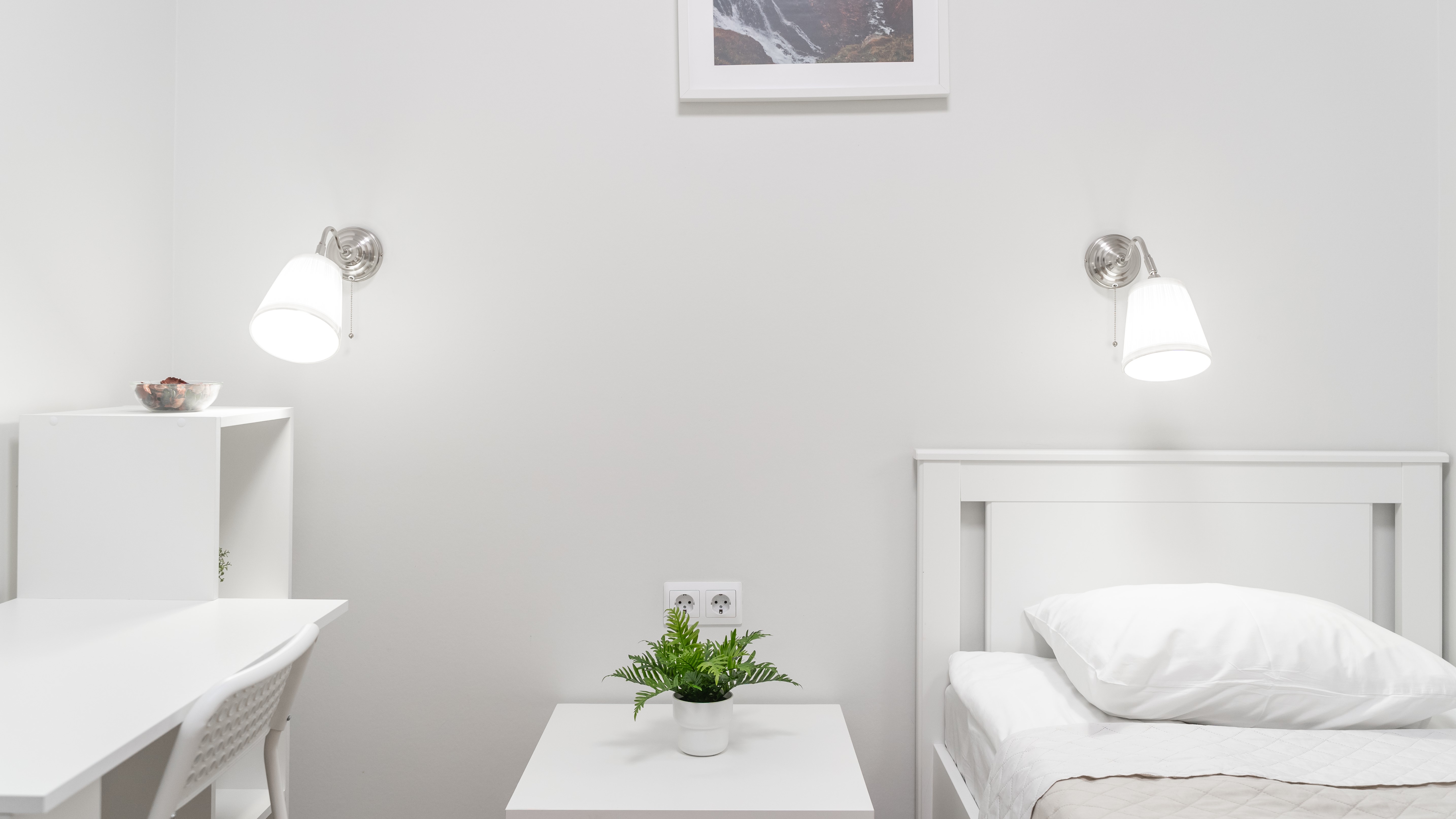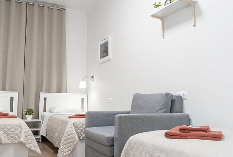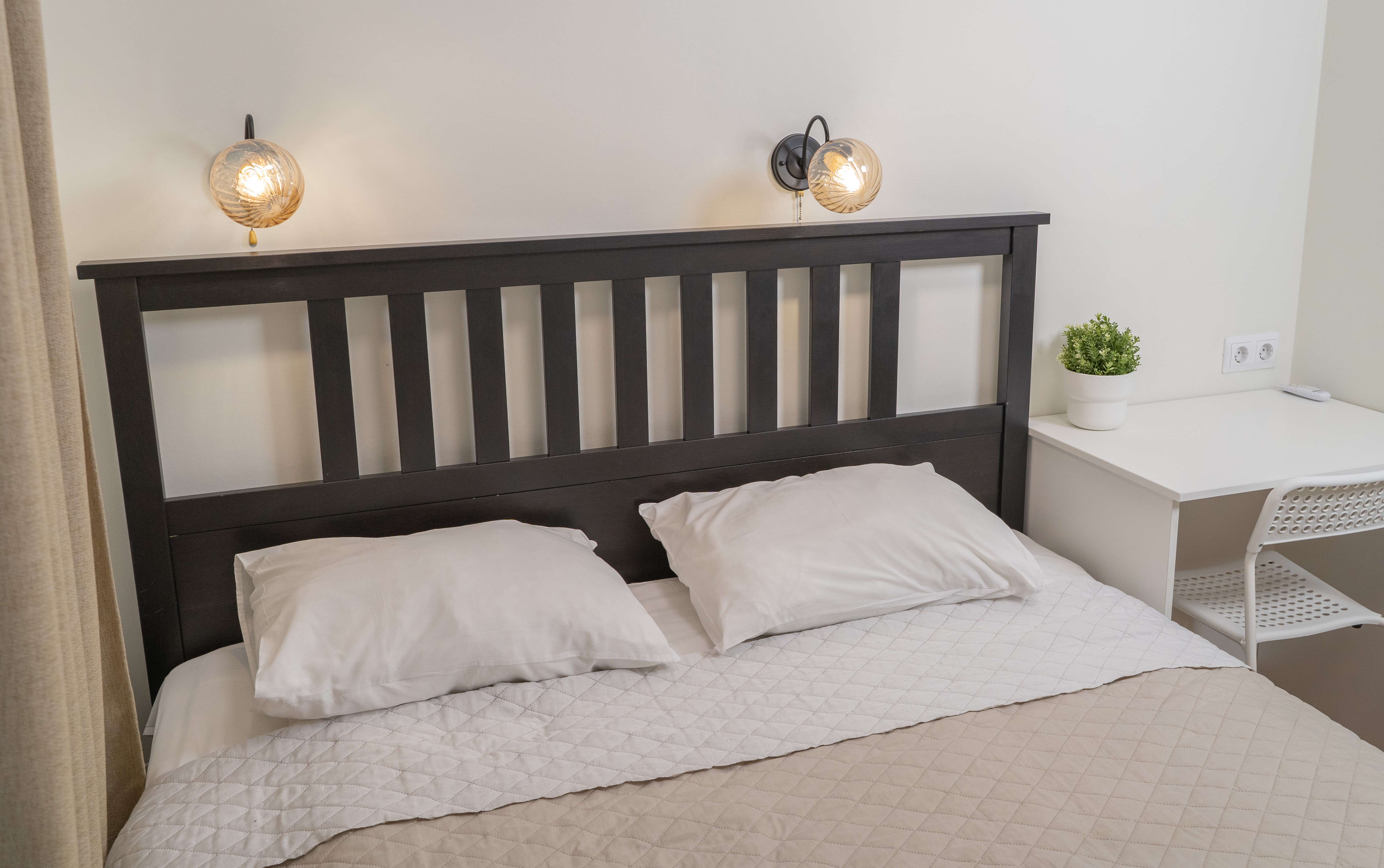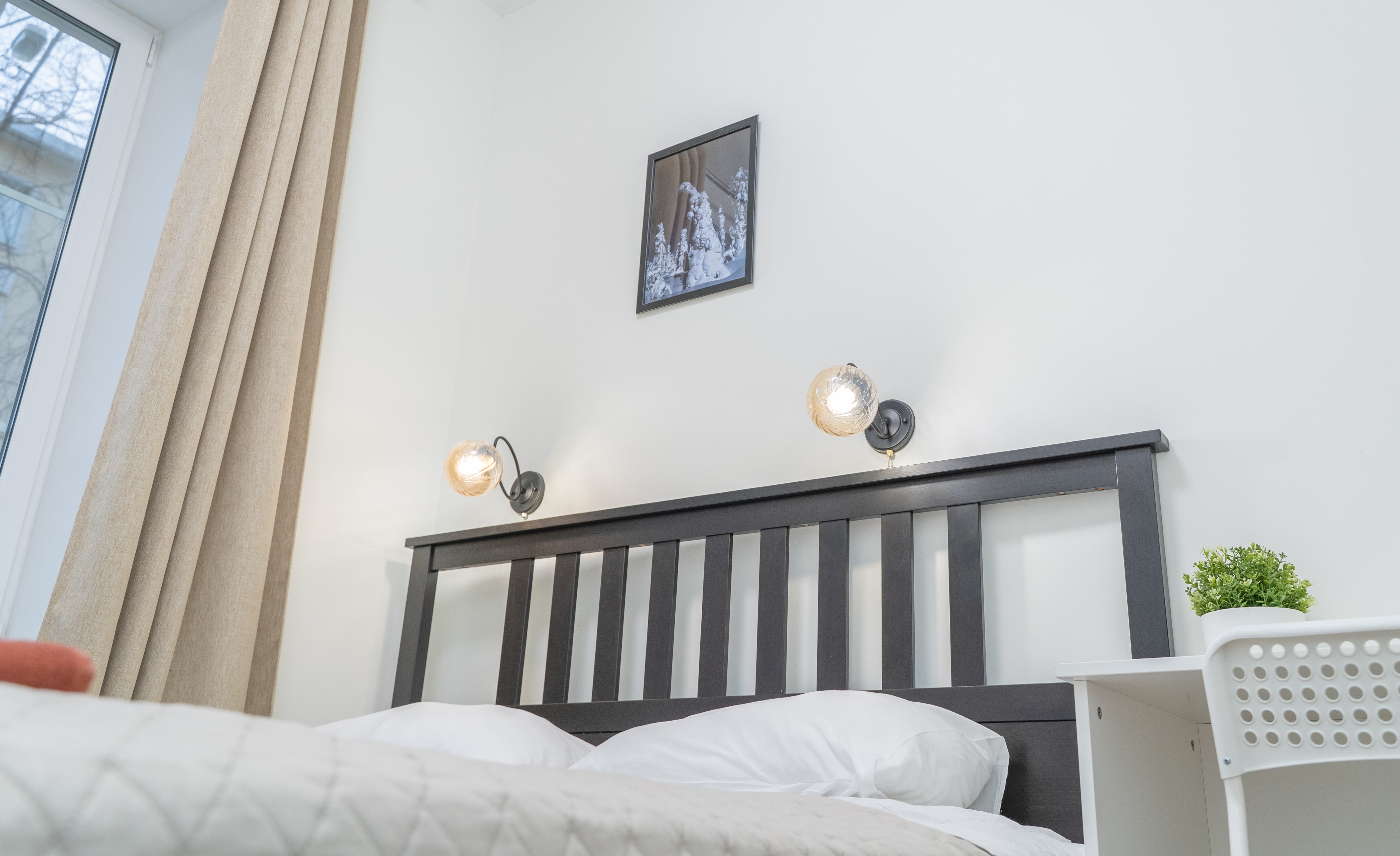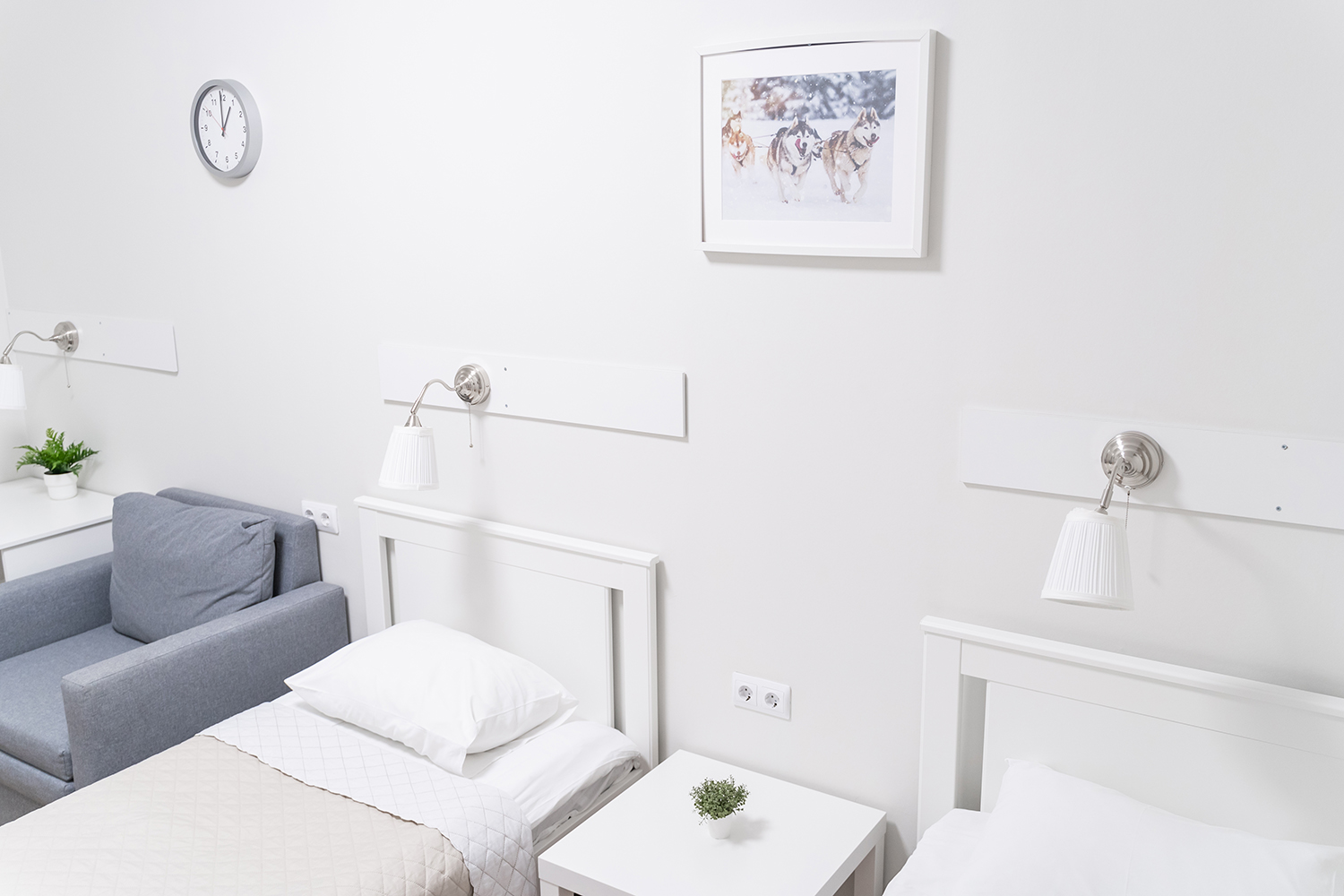 В распоряжении гостей стандартные номера разные по площади и вместимости. В некоторых номерах санузел общий и находится на этаже, в других есть собственная ванная комната. Также во всех номерах имеются плазменный телевизор и рабочий стол. Для удобства отдыхающих в отеле предусмотрена общая кухня, оснащенная посудой и необходимой техникой: есть холодильник, электрическая плита, микроволновая печь. Как в номерах, так и в общих зонах доступен беспроводной интернет.